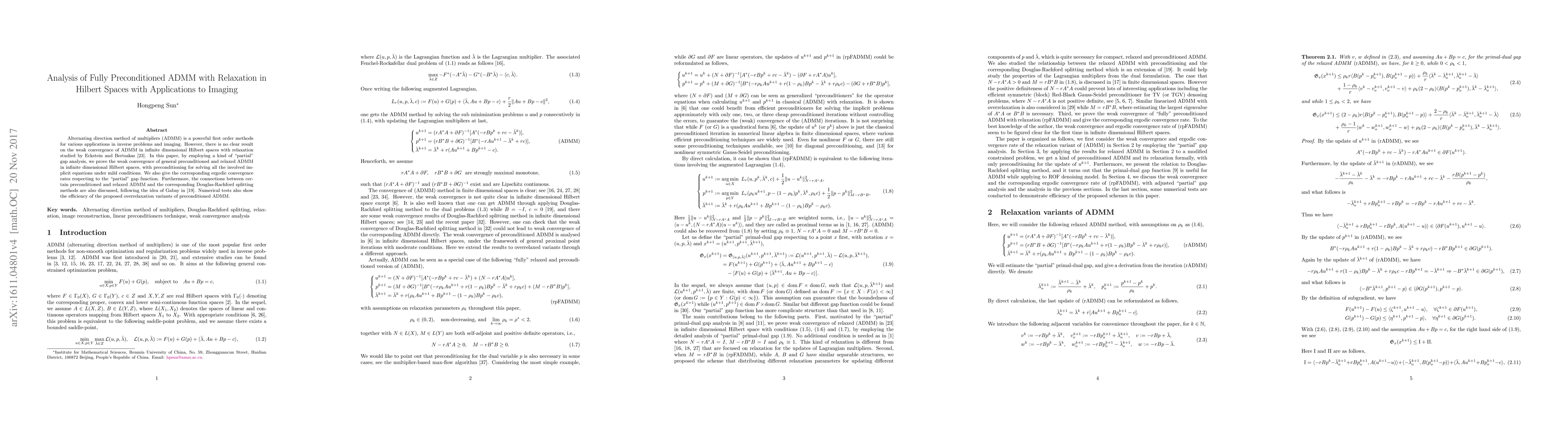 This paper proves the weak convergence of general preconditioned and relaxed ADMM in infinite-dimensional Hilbert spaces under mild conditions. It also discusses connections with other optimization methods and shows numerical efficiency.