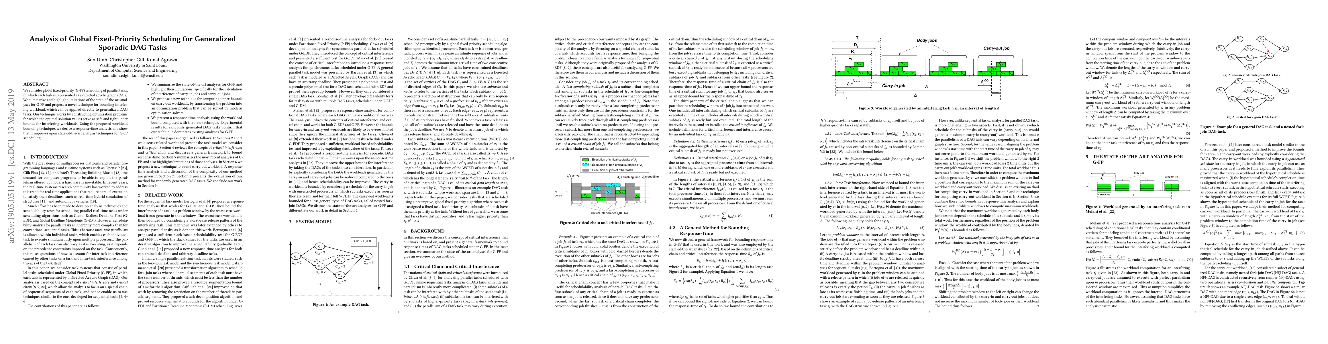 This paper analyzes global fixed-priority scheduling for parallel tasks represented as generalized DAGs, highlighting limitations of existing methods and proposing a novel technique for bounding interfering workload. The new technique improves upon state-of-the-art response-time analysis for G-FP scheduling.