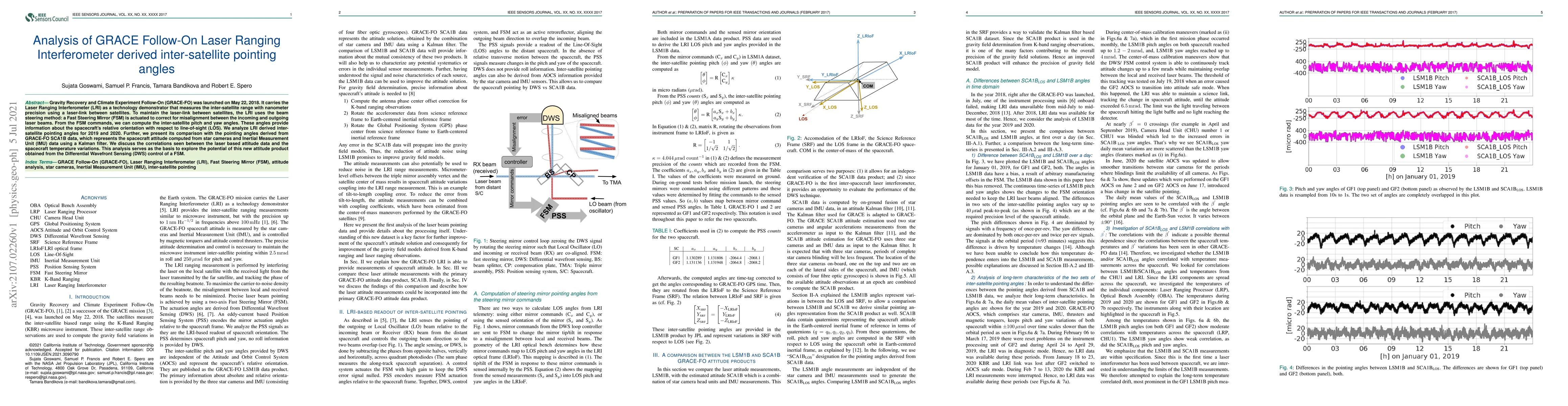 This paper analyzes the inter-satellite pointing angles derived from the GRACE Follow-On Laser Ranging Interferometer (LRI) and compares them with those from GRACE-FO's star cameras and IMU data. The study reveals correlations between laser-based attitude data and spacecraft temperature variations, highlighting the potential of the new attitude product from Differential Wavefront Sensing (DWS) control of a Fast Steering Mirror (FSM).