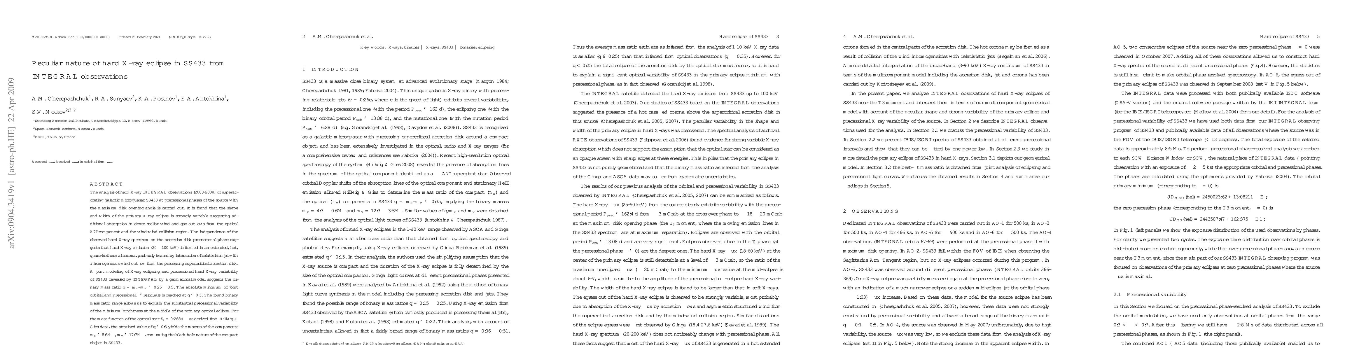 A study of hard X-ray observations of SS433 reveals variable primary X-ray eclipses attributed to dense stellar wind and gas outflows, suggesting a binary system with a black hole companion.