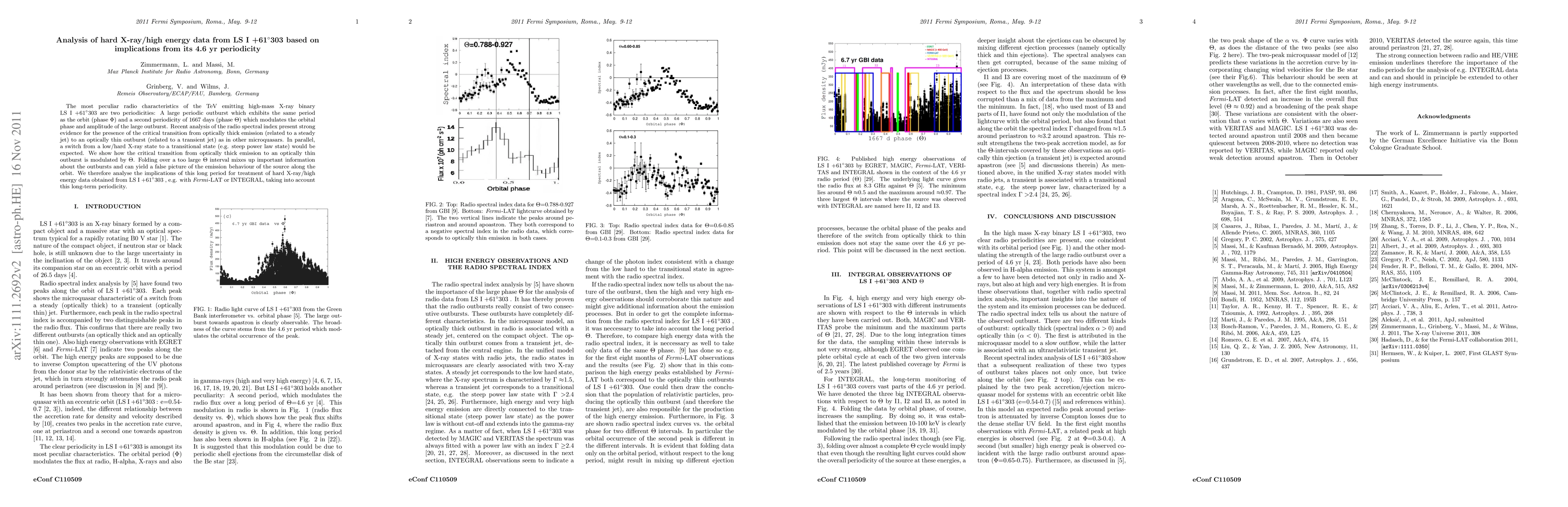 The most peculiar radio characteristics of the TeV emitting high-mass X-ray binary LS I +61{\deg}303 are two periodicities: A large periodic outburst which exhibits the same period as the orbit (phase \Phi) and a second periodicity of 1667 days (phase \Theta) which modulates the orbital phase and amplitude of the large outburst. Recent analysis of the radio spectral index present strong evidence for the presence of the critical transition from optically thick emission (related to a steady jet) to an optically thin outburst (related to a transient jet) as in other microquasars. In parallel, a switch from a low/hard X-ray state to a transitional state (e.g. steep power law state) would be expected. We show how the critical transition from optically thick emission to an optically thin outburst is modulated by \Theta. Folding over a too large \Theta-interval mixes up important information about the outbursts and can yield a false picture of the emission behaviour of the source along the orbit. We therefore analyse the implications of this long period for treatment of hard X-ray/high energy data obtained from LS I +61{\deg}303, e.g. with Fermi-LAT or INTEGRAL, taking into account this long-term periodicity.