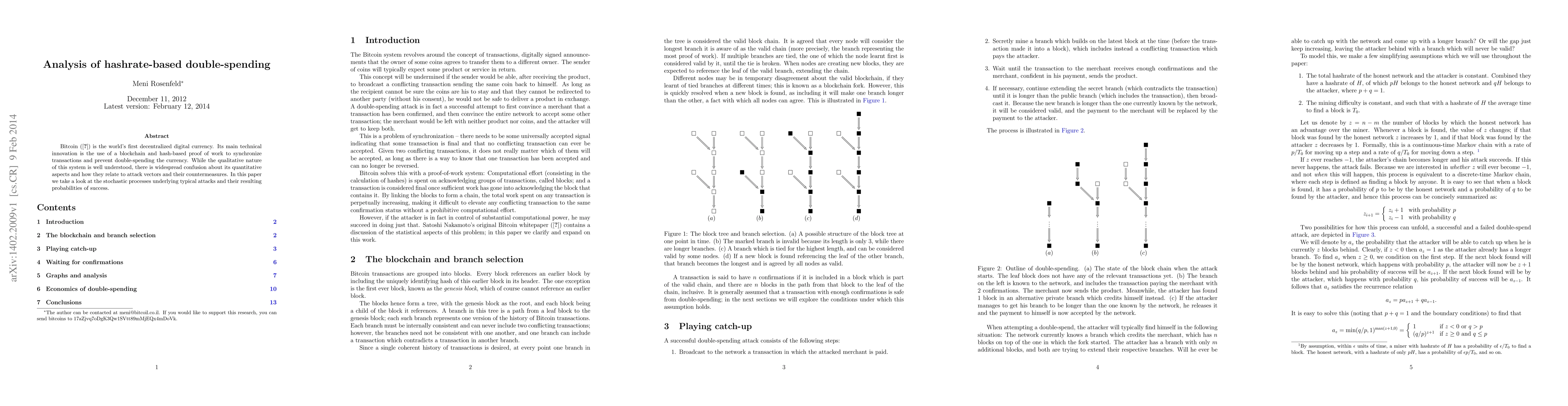 This paper analyzes the stochastic processes behind Bitcoin's hash-based double spending attacks and their probabilities of success, providing new insights into attack vectors and countermeasures.