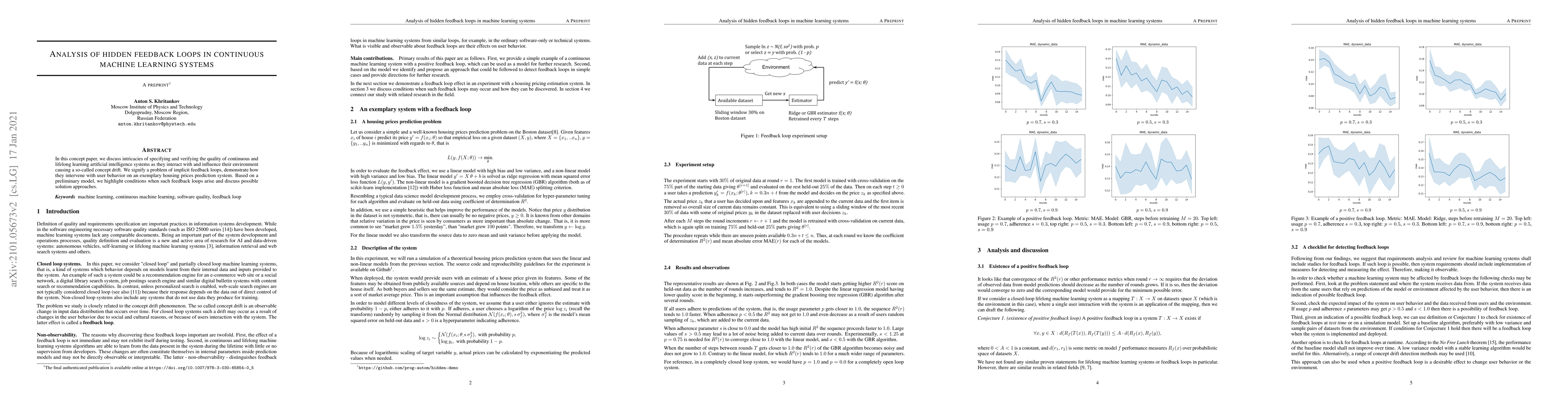 In this concept paper, we discuss intricacies of specifying and verifying the quality of continuous and lifelong learning artificial intelligence systems as they interact with and influence their environment causing a so-called concept drift. We signify a problem of implicit feedback loops, demonstrate how they intervene with user behavior on an exemplary housing prices prediction system. Based on a preliminary model, we highlight conditions when such feedback loops arise and discuss possible solution approaches.