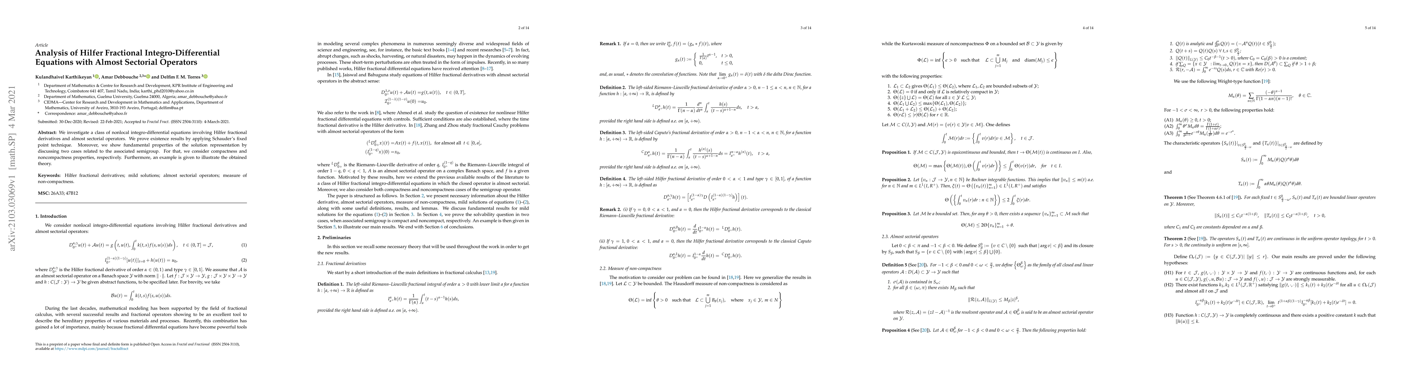 This paper analyzes Hilfer fractional integro-differential equations using almost sectorial operators, proving existence via Schauder's fixed point theorem. It explores solution representations and discusses compactness and noncompactness properties, supplemented by an illustrative example.