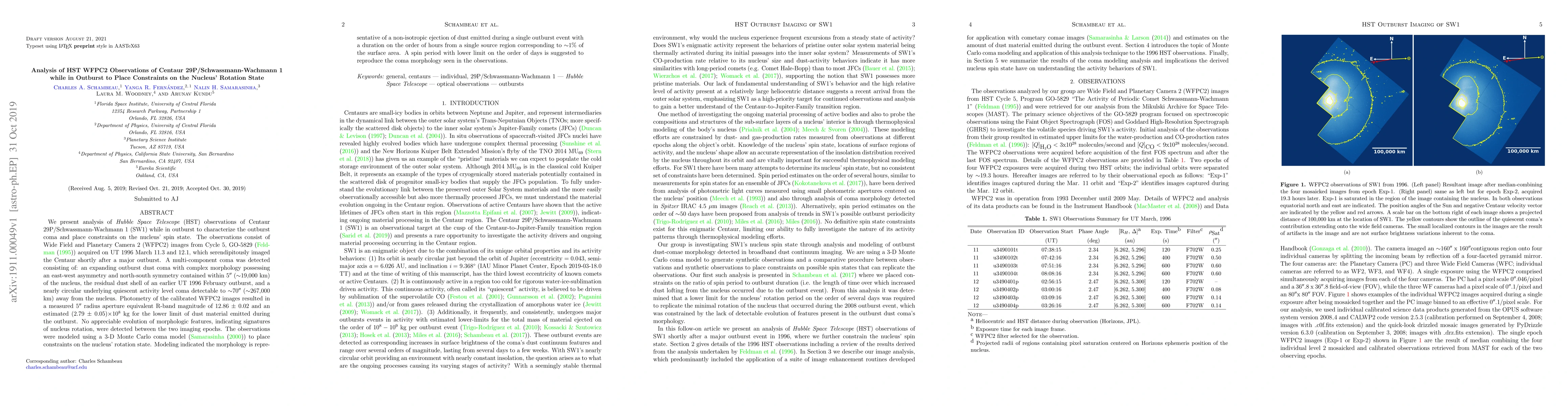 This study analyzes HST WFPC2 observations of Centaur 29P/Schwassmann-Wachmann 1 during an outburst, revealing a complex multi-component coma and constraining the nucleus' rotation state. No significant rotation signatures were detected, suggesting a spin period of at least several days.