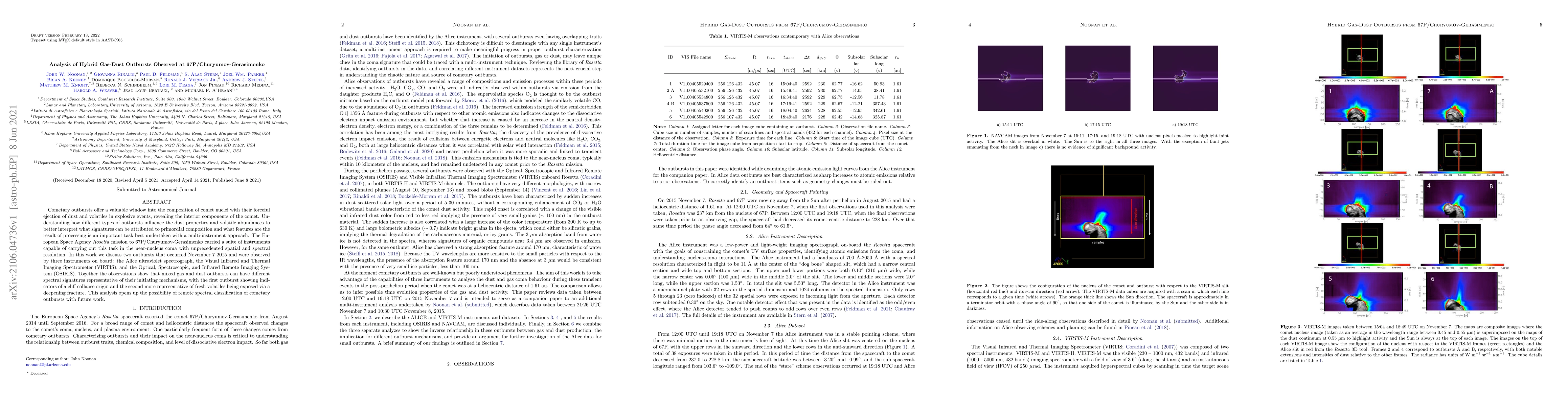 This study analyzes two outbursts from Comet 67P/Churyumov-Gerasimenko observed by the Rosetta spacecraft's Alice, VIRTIS, and OSIRIS instruments. It reveals that mixed gas and dust outbursts can have distinct spectral signatures, indicating different origins such as cliff collapse or exposure of fresh volatiles through deepening fractures. This research suggests the potential for classifying cometary outbursts remotely using spectra in future studies.