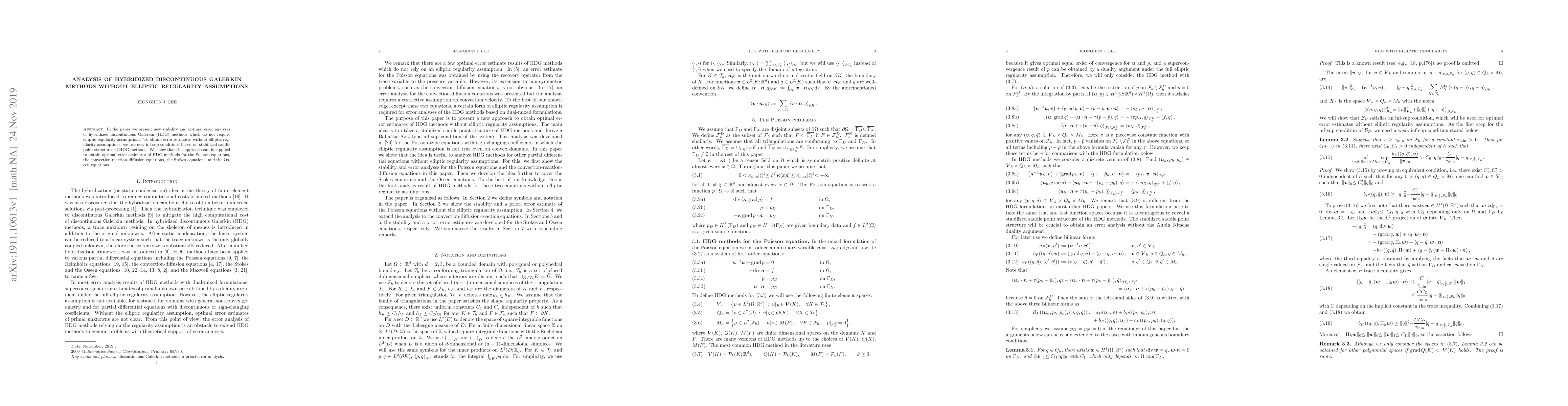 This paper presents new stability and optimal error analyses for hybridized discontinuous Galerkin (HDG) methods that do not rely on elliptic regularity assumptions. It introduces novel inf-sup conditions based on stabilized saddle point structures to achieve these analyses for various equations.