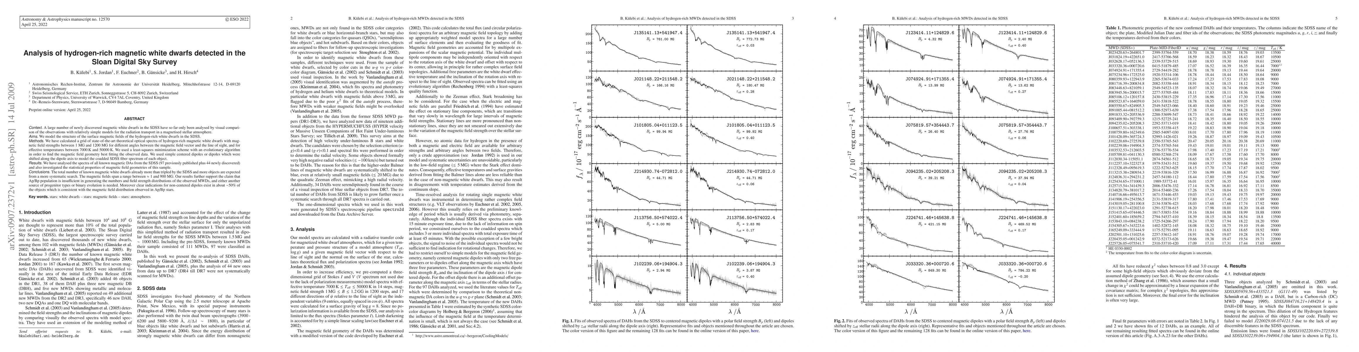 This study models the magnetic field structures of hydrogen-rich magnetic white dwarfs detected in the SDSS, using advanced theoretical spectra and evolutionary algorithms to fit the observed data. The analysis reveals that non-centered dipoles are common in about half of the observed magnetic white dwarfs, suggesting that binary evolution or alternative progenitor types may be necessary to explain the observed field strengths and distributions.