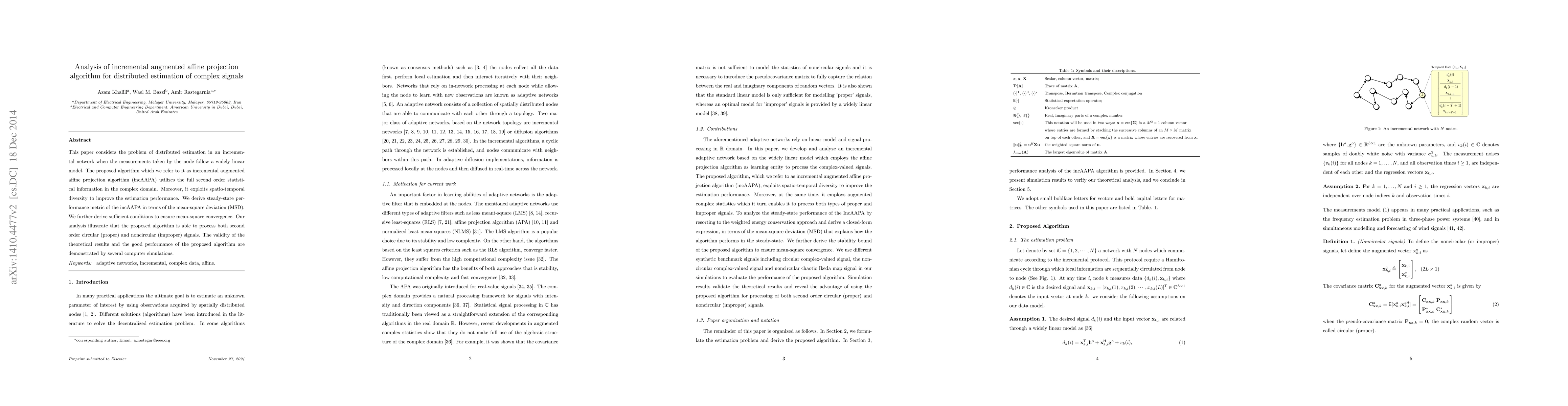A new algorithm called incremental augmented affine projection is proposed for distributed estimation of complex signals in a network, achieving better performance through the use of full statistical information and spatio-temporal diversity.