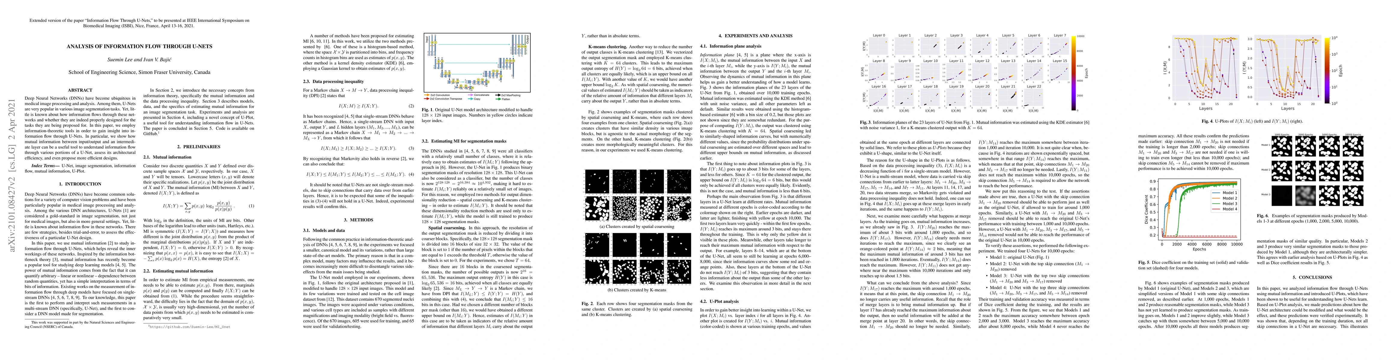 Deep Neural Networks (DNNs) have become ubiquitous in medical image processing and analysis. Among them, U-Nets are very popular in various image segmentation tasks. Yet, little is known about how information flows through these networks and whether they are indeed properly designed for the tasks they are being proposed for. In this paper, we employ information-theoretic tools in order to gain insight into information flow through U-Nets. In particular, we show how mutual information between input/output and an intermediate layer can be a useful tool to understand information flow through various portions of a U-Net, assess its architectural efficiency, and even propose more efficient designs.