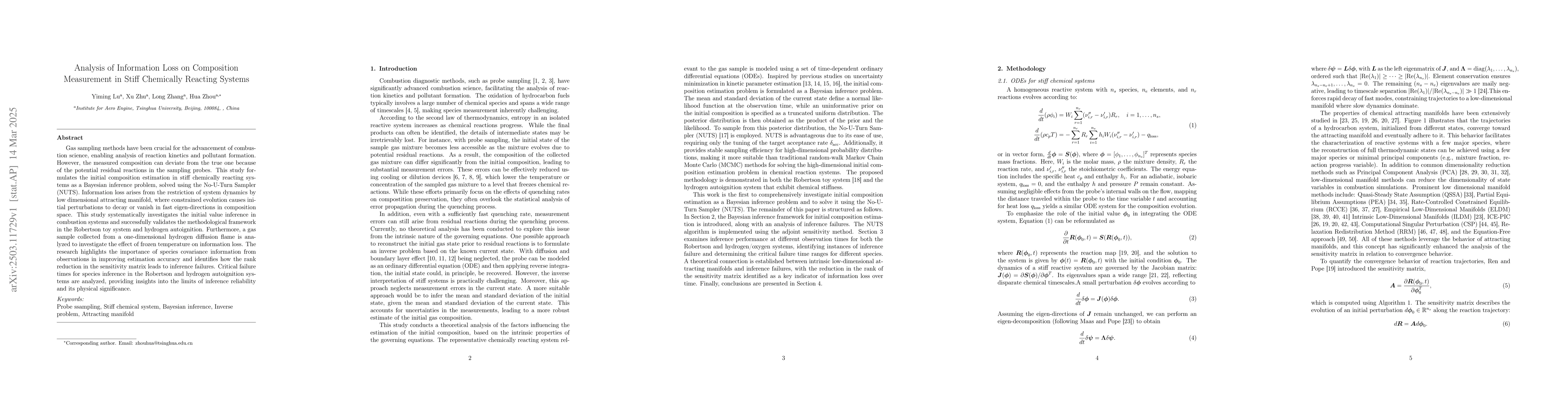 The paper introduces a Bayesian inference approach using NUTS to estimate initial compositions in stiff chemically reacting systems, addressing information loss issues.