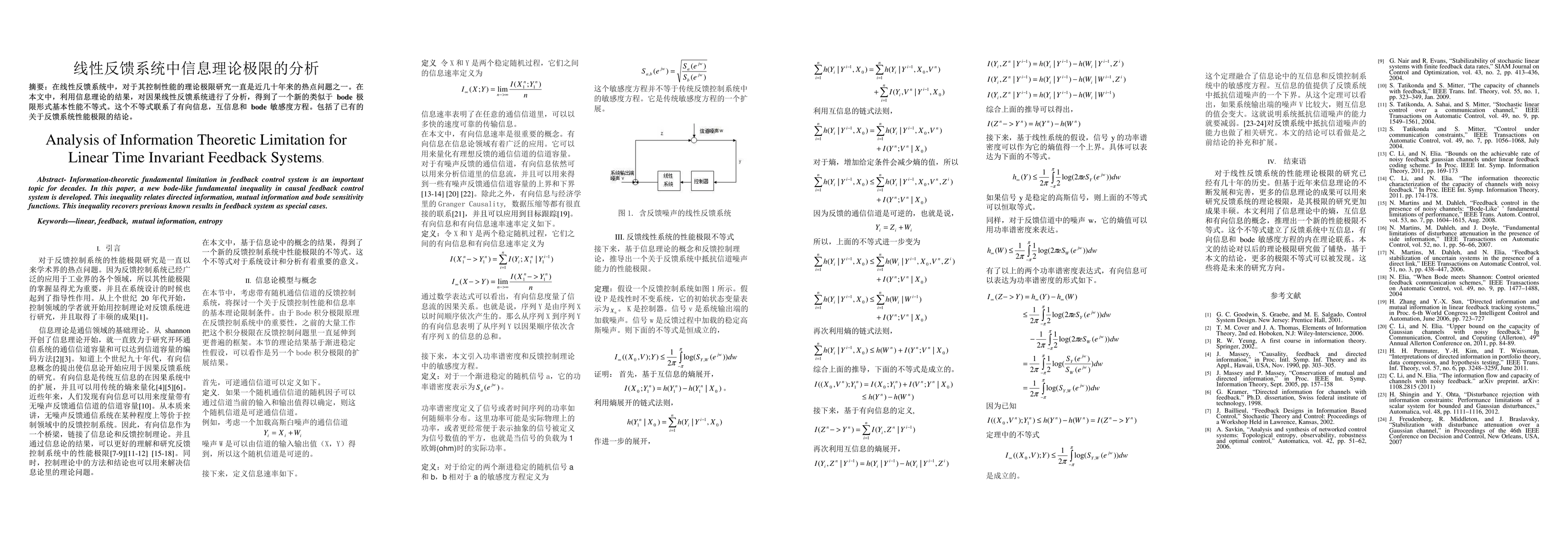 Information-theoretic fundamental limitation in feedback control system is an important topic for decades. In this paper, a new bode-like fundamental inequality in causal feedback control system is developed. This inequality relates directed information, mutual information and bode sensitivity functions. This inequality recovers previous known results in feedback system as special cases.