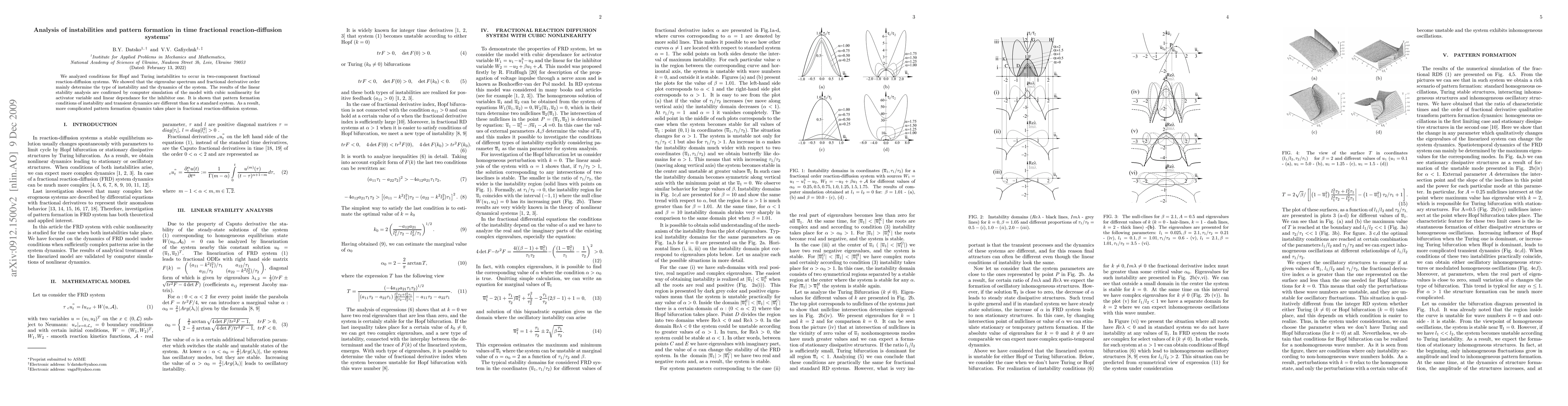 The paper presents a detailed linear stability analysis of fractional reaction-diffusion systems, identifying new instability conditions and demonstrating their impact on pattern formation dynamics compared to standard systems.