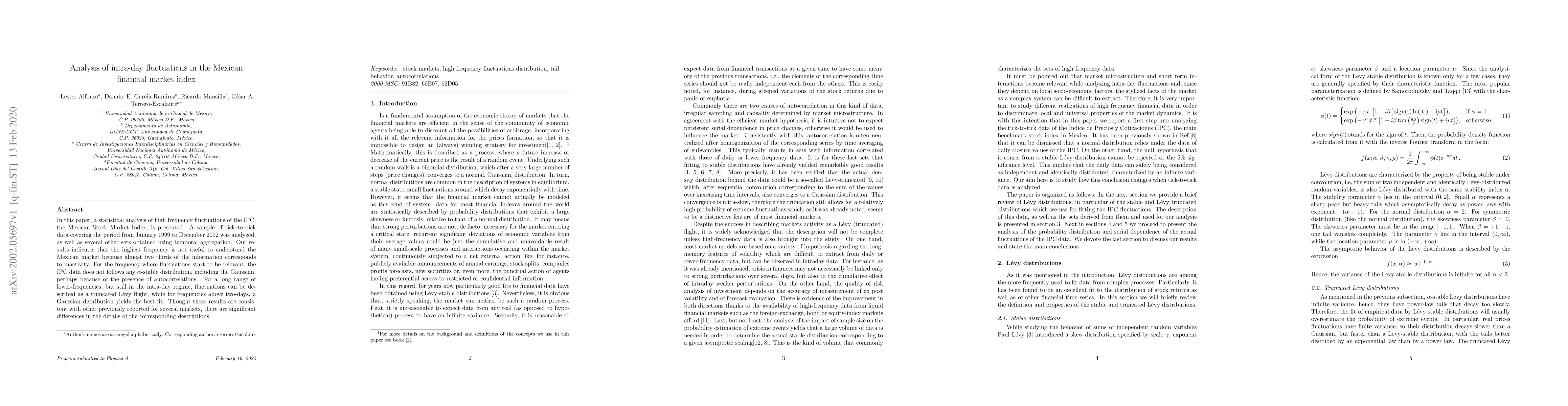 In this paper, a statistical analysis of high frequency fluctuations of the IPC, the Mexican Stock Market Index, is presented. A sample of tick-to-tick data covering the period from January 1999 to December 2002 was analyzed, as well as several other sets obtained using temporal aggregation. Our results indicates that the highest frequency is not useful to understand the Mexican market because almost two thirds of the information corresponds to inactivity. For the frequency where fluctuations start to be relevant, the IPC data does not follows any alpha-stable distribution, including the Gaussian, perhaps because of the presence of autocorrelations. For a long range of lower-frequencies, but still in the intra-day regime, fluctuations can be described as a truncated L\'evy flight, while for frequencies above two-days, a Gaussian distribution yields the best fit. Thought these results are consistent with other previously reported for several markets, there are significant differences in the details of the corresponding descriptions.