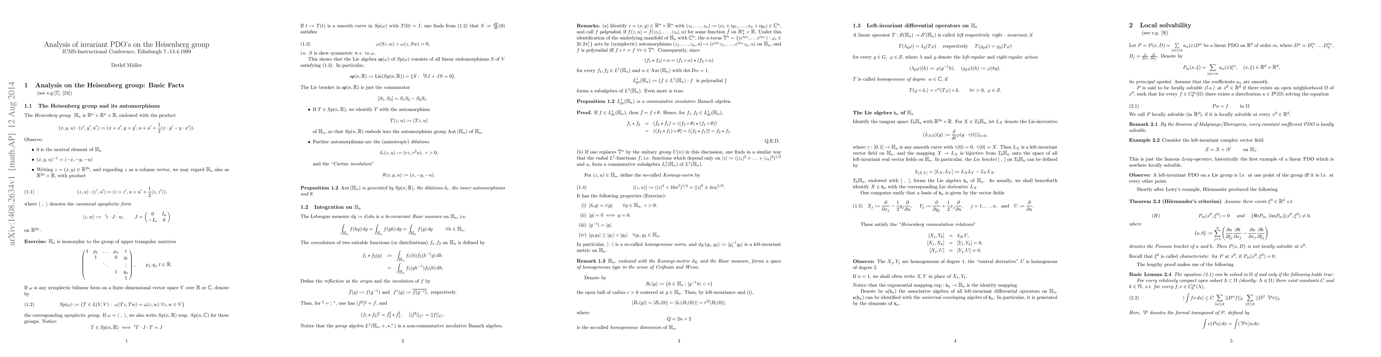 In these lecture notes, the representation theory of the Heisenberg group as well as Howe's construction of the metaplectic group by means of twisted convolution operators with generalized, complex Gaussians are reviewed, and it is shown how these tools can be successfully applied to the study of local solvability for second order left-invariant differential operators on the Heisenberg group.