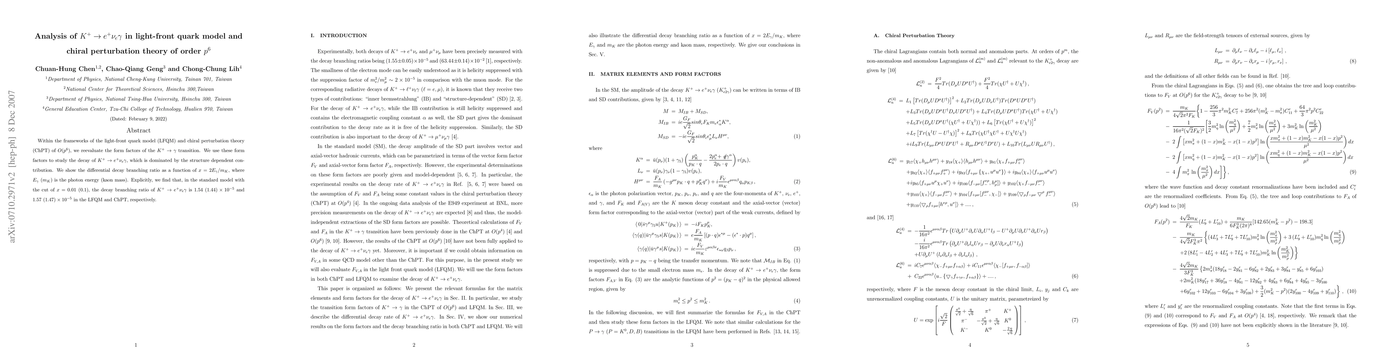 Researchers reevaluate $K^+ o e^+ u_{e} heta$ decay using light-front quark model and chiral perturbation theory, finding a branching ratio of 1.54x10^-5 to 1.57x10^-5 in the standard model.