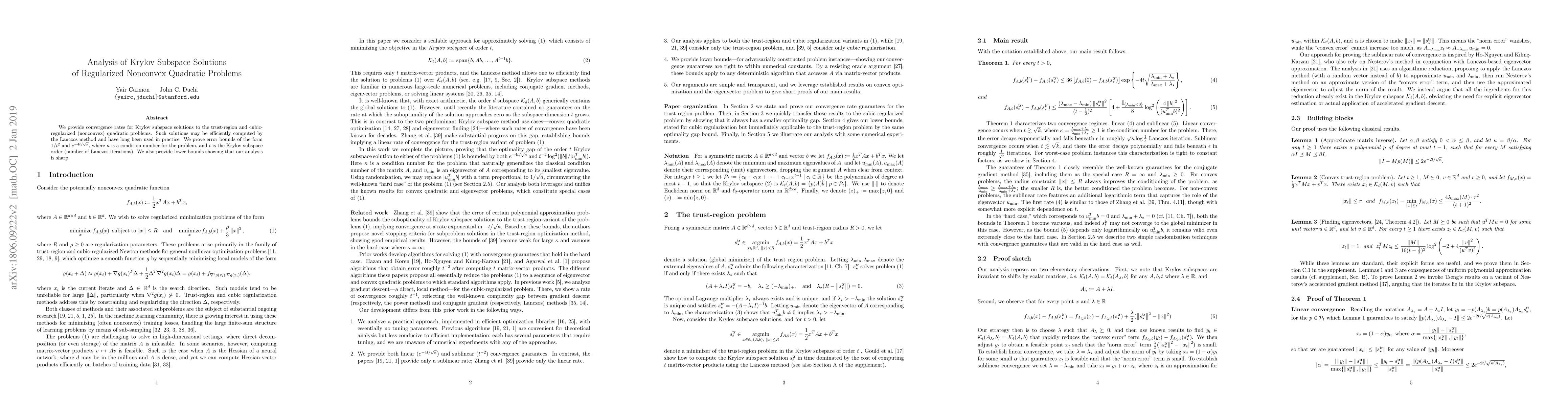 This paper analyzes convergence rates for Krylov subspace solutions to regularized nonconvex quadratic problems, proving error bounds of $1/t^2$ and $e^{-4t/\sqrt{\kappa}}$, where $t$ is the subspace order and $\kappa$ is the condition number, demonstrating the efficiency of the Lanczos method. Lower bounds are also provided to show the analysis's sharpness.