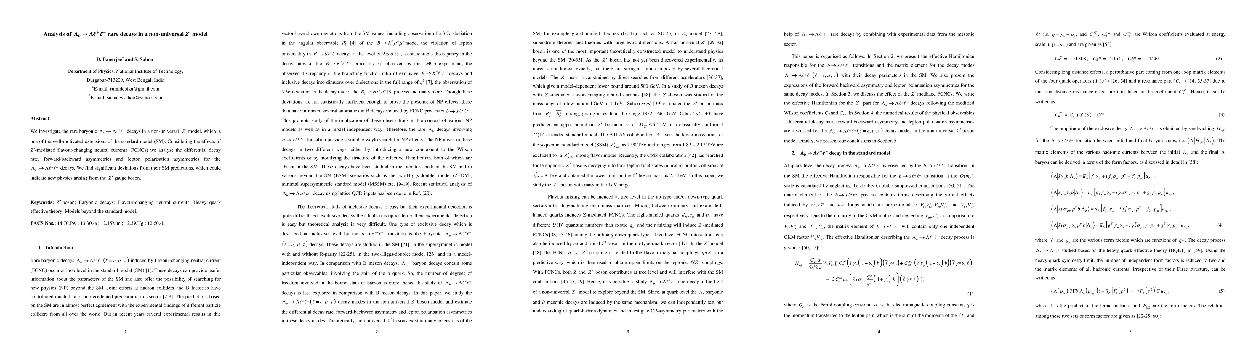 This paper analyzes rare ${\Lambda}_b\rightarrow{\Lambda}l^+ l^-$ decays in a non-universal $Z'$ model, revealing significant deviations from standard model predictions due to $Z'$-mediated FCNCs. These findings suggest potential new physics beyond the standard model.
