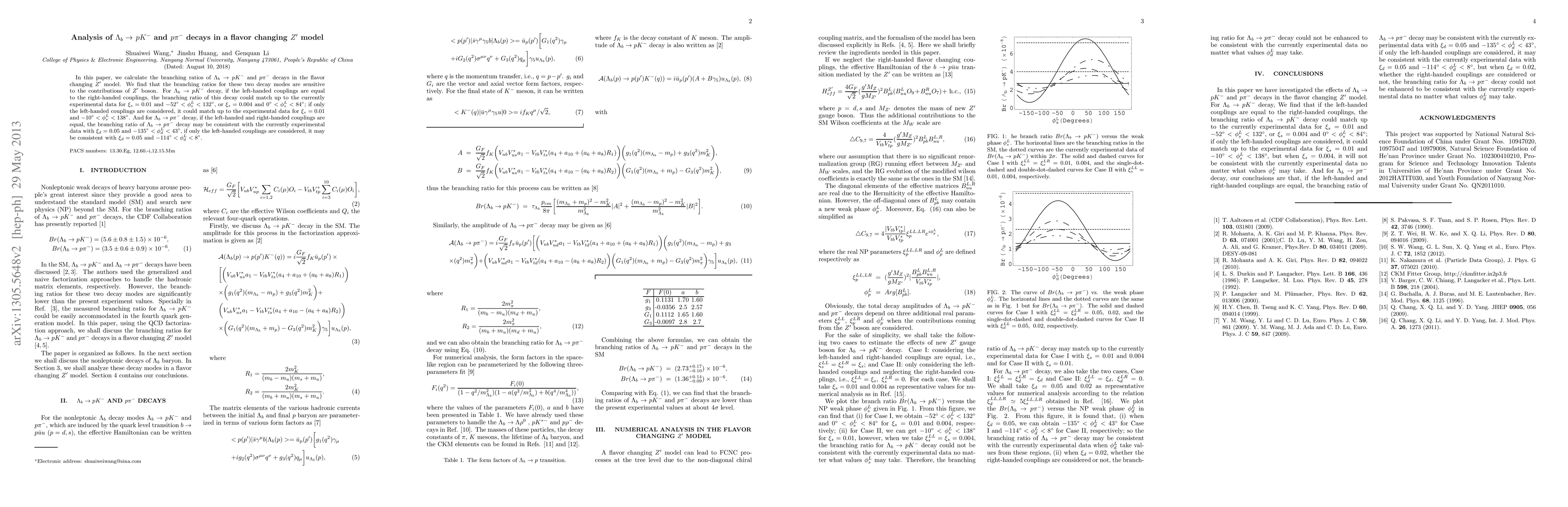 In this paper, we calculate the branching ratios of \Lambda_{b} \to pK^{-} and p\pi^{-} decays in the flavor changing Z^{\prime} model. We find that the branching ratios for these two decay modes are sensitive to the contributions of Z^{\prime} boson. For \Lambda_{b}\to p K^{-} decay, if the left-handed couplings are equal to the right-handed couplings, the branching ratio of this decay could match up to the currently experimental data for \xi_{s}=0.01 and -52^{\circ}<\phi^{L}_{s}<132^{\circ}, or \xi_{s}=0.004 and 0^{\circ}<\phi^{L}_{s}<84^{\circ}; if only the left-handed couplings are considered, it could match up to the experimental data for \xi_{s}=0.01 and -10^{\circ}<\phi^{L}_{s}<138^{\circ}$. And for \Lambda_{b} \to p\pi^{-} decay, if the left-handed and right-handed couplings are equal, the branching ratio of \Lambda_{b} \to p\pi^{-} decay may be consistent with the currently experimental data with \xi_{d}=0.05 and -135^{\circ}<\phi^{L}_{d}<43^{\circ}, if only the left-handed couplings are considered, it may be consistent with \xi_{d}=0.05 and -114^{\circ}<\phi^{L}_{d}<8^{\circ}.