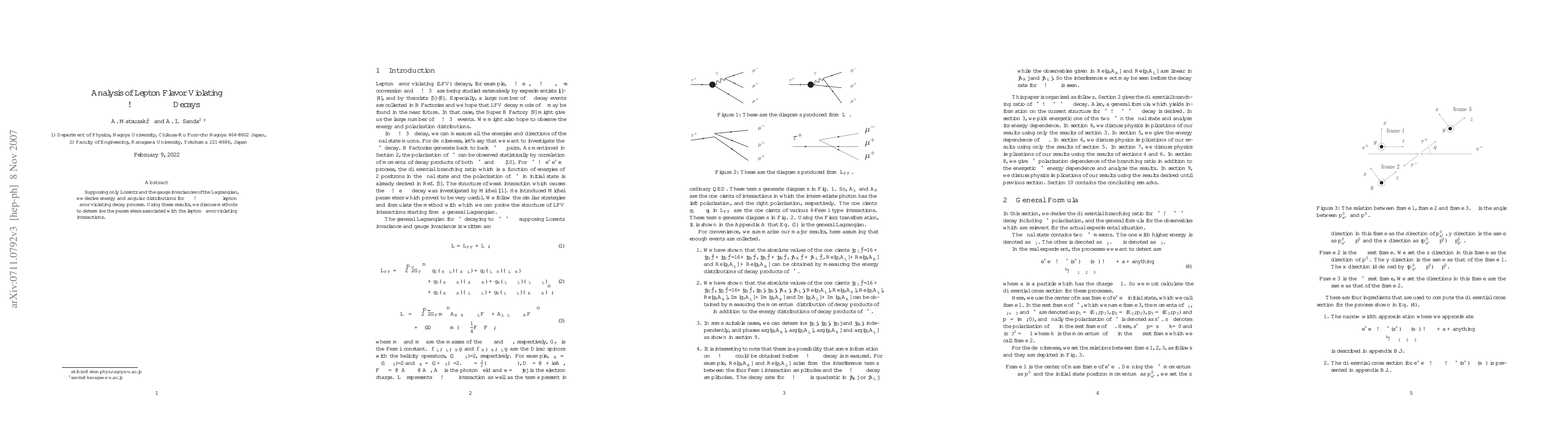 This paper analyzes the lepton flavor violating decay $\tau^\pm \to \mu^\pm \mu^\pm \mu^\mp$, deriving energy and angular distributions under the assumptions of Lorentz and gauge invariance. It also explores methods to determine the parameters linked to these interactions.