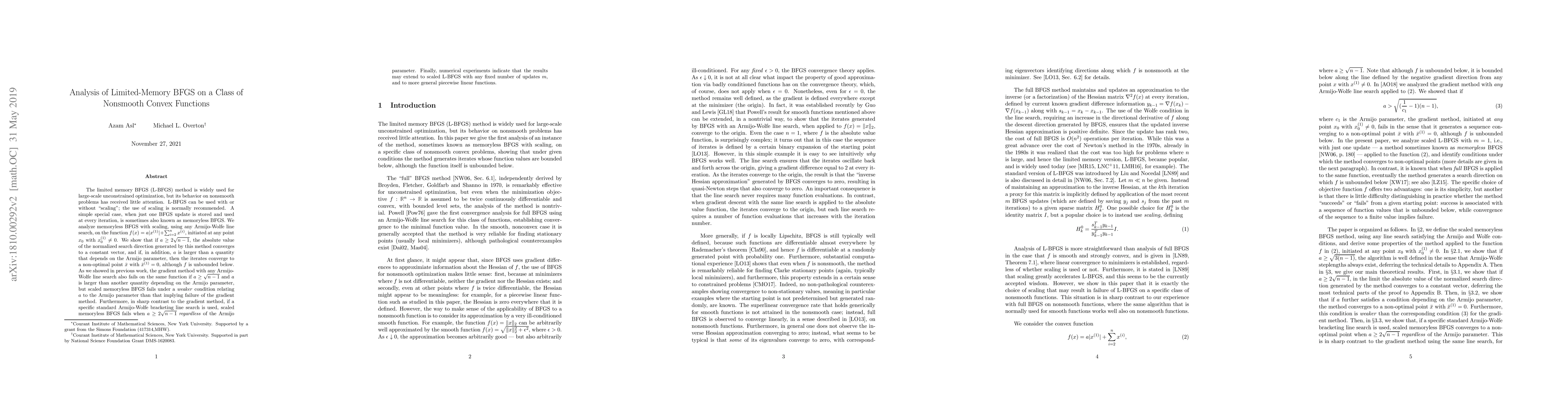 This paper analyzes the behavior of memoryless BFGS with scaling on nonsmooth convex functions, specifically $f(x) = a|x^{(1)}| + \sum_{i=2}^{n} x^{(i)}$. It shows that under certain conditions, the method converges to a non-optimal point despite the function being unbounded below, contrasting with the gradient method's failure criteria.