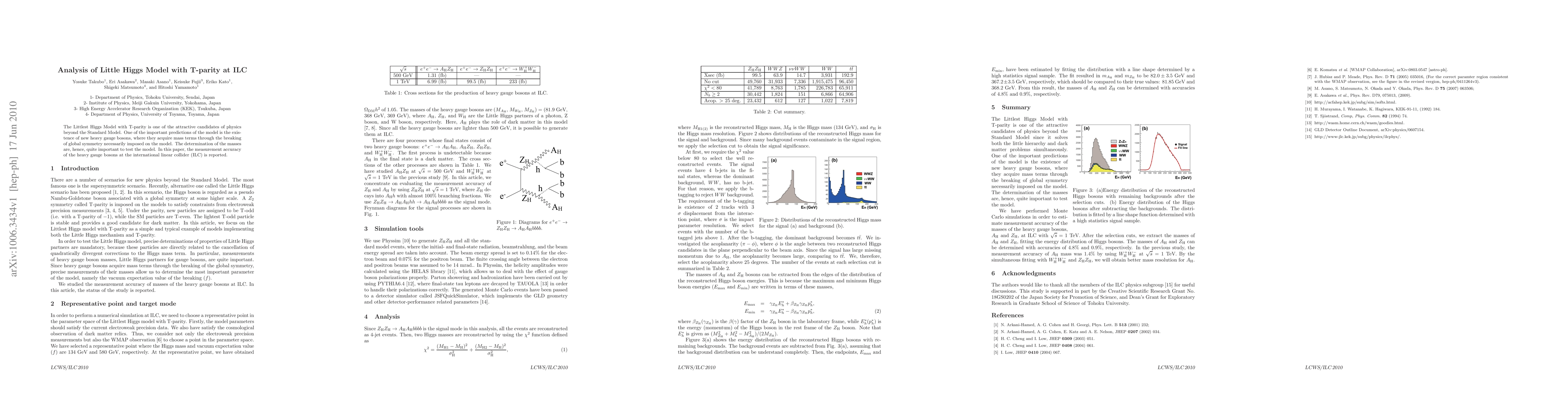 The Littlest Higgs Model with T-parity is one of the attractive candidates of physics beyond the Standard Model. One of the important predictions of the model is the existence of new heavy gauge bosons, where they acquire mass terms through the breaking of global symmetry necessarily imposed on the model. The determination of the masses are, hence, quite important to test the model. In this paper, the measurement accuracy of the heavy gauge bosons at the international linear collider (ILC) is reported.