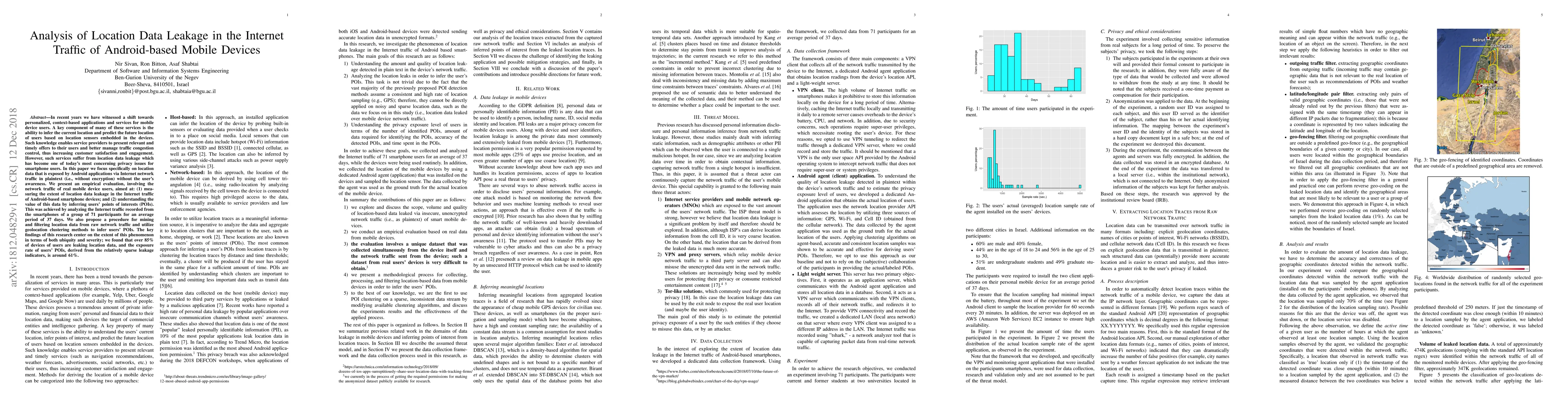 This paper investigates location data leakage in Android-based mobile devices via unencrypted Internet traffic, revealing that over 85% of devices leak location data. The study also infers users' points of interest (POIs) from the leaked data, finding that approximately 61% of POIs can be exposed.