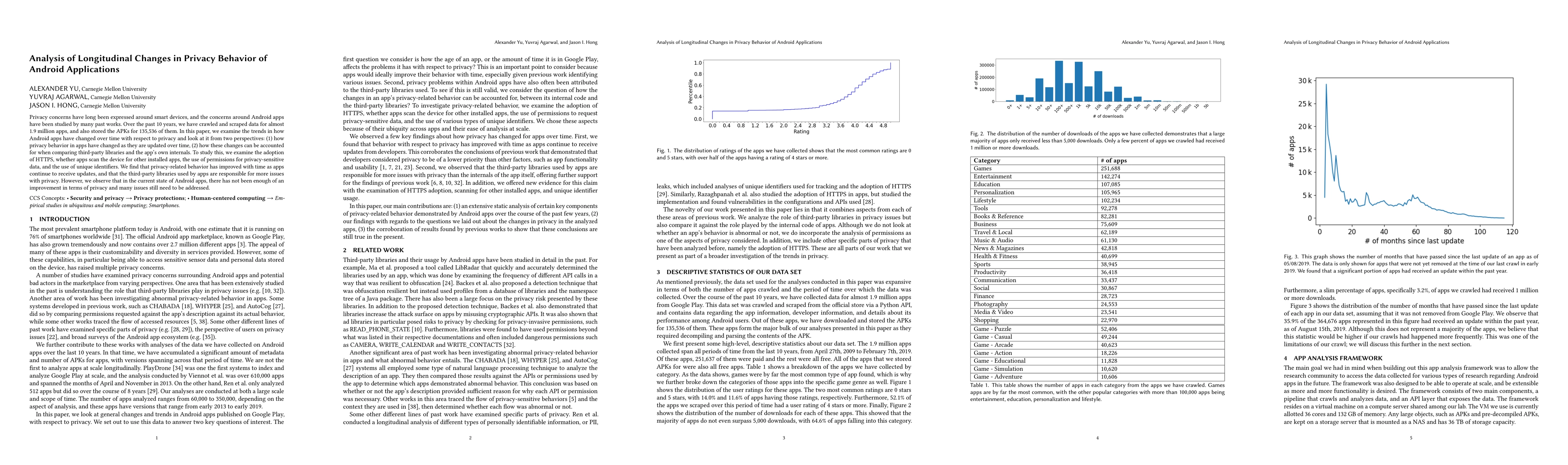 This paper analyzes longitudinal changes in privacy behavior of Android apps over the past decade, finding improvements in privacy-related behaviors as apps update, but also highlighting persistent issues, particularly due to third-party libraries. The study focuses on HTTPS adoption, app scanning, permissions, and unique identifiers.