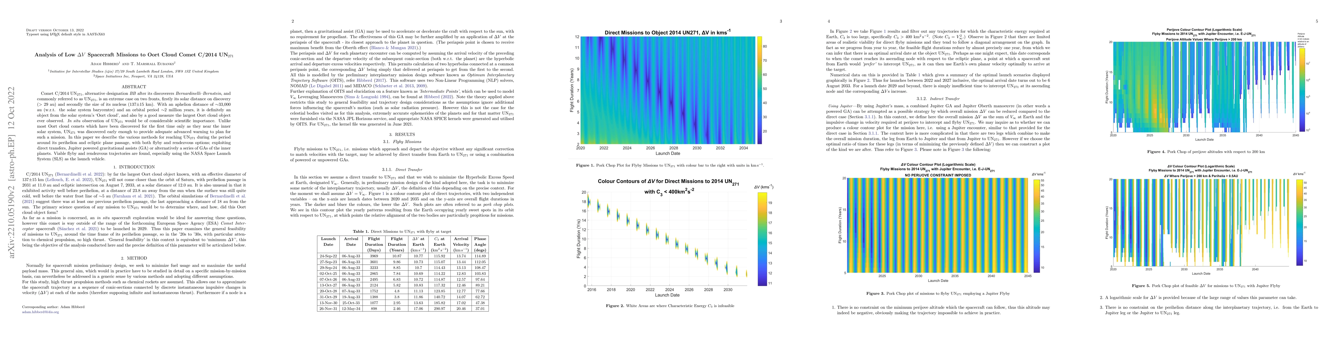 Comet C/2014 UN$_{271}$, alternative designation 'BB' after its discoverers 'Bernardinelli/Bernstein', and commonly referred to as UN$_{271}$, is an extreme case on two fronts, firstly its solar distance on discovery ($>$ 29 au) and secondly the size of its nucleus (137$\pm$ 15 km). With an aphelion distance of $\sim$33,000 au (w.r.t. the solar system barycentre) and an orbital period $\sim$2 million years, it is definitely an object from the solar system's Oort cloud, and also by a good measure the largest Oort cloud object ever observed. In situ observation of UN$_{271}$ would be of considerable scientific importance. Unlike most Oort cloud comets which have been discovered for the first time only as they near the inner solar system, UN$_{271}$ was discovered early enough to provide adequate advanced warning to plan for such a mission. In this paper we describe the various methods for reaching UN$_{271}$ during the period around its perihelion and ecliptic plane passage, with both flyby and rendezvous options; exploiting direct transfers, Jupiter powered gravitational assists (GA) or alternatively a series of GAs of the inner planets. Viable flyby and rendezvous trajectories are found, especially using the NASA Space Launch System (SLS) as the launch vehicle.