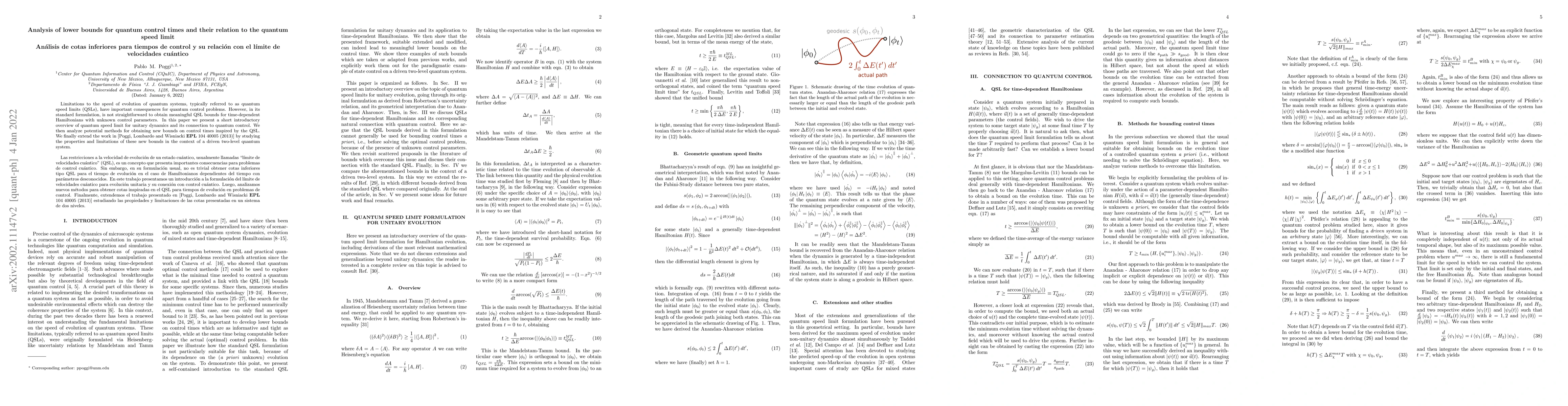 Limitations to the speed of evolution of quantum systems, typically referred to as quantum speed limits (QSLs), have important consequences for quantum control problems. However, in its standard formulation, is not straightforward to obtain meaningful QSL bounds for time-dependent Hamiltonians with unknown control parameters. In this paper we present a short introductory overview of quantum speed limit for unitary dynamics and its connection to quantum control. We then analyze potential methods for obtaining new bounds on control times inspired by the QSL. We finally extend the work in [Poggi, Lombardo and Wisniacki EPL 104 40005 (2013)] by studying the properties and limitations of these new bounds in the context of a driven two-level quantum system