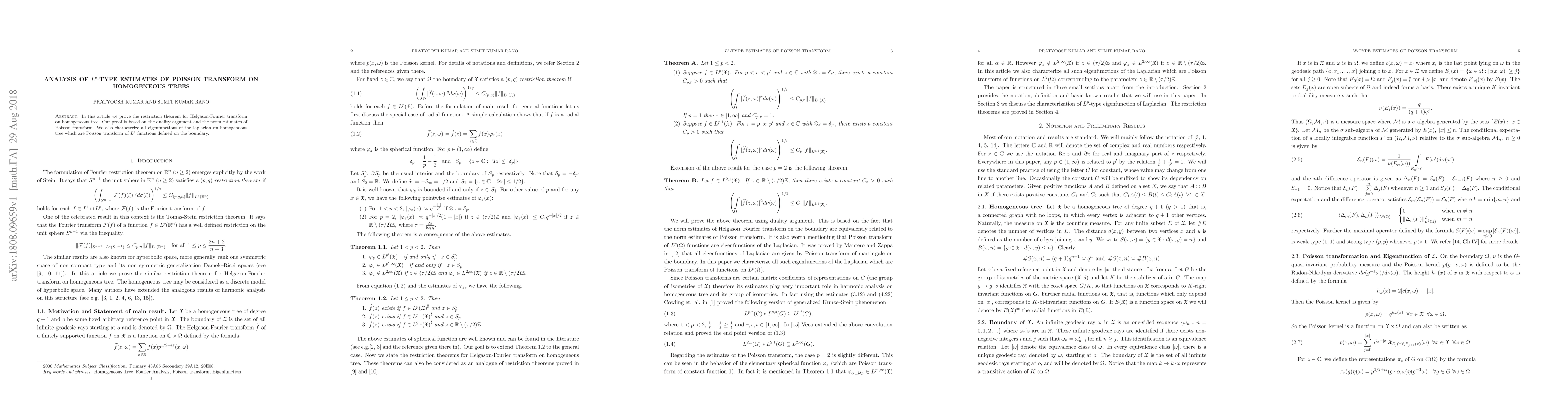 In this article we prove the restriction theorem for Helgason-Fourier transform on homogeneous tree. Our proof is based on the duality argument and the norm estimates of Poisson transform. We also characterize all eigenfunctions of the laplacian on homogeneous tree which are Poisson transform of $L^p$ functions defined on the boundary.