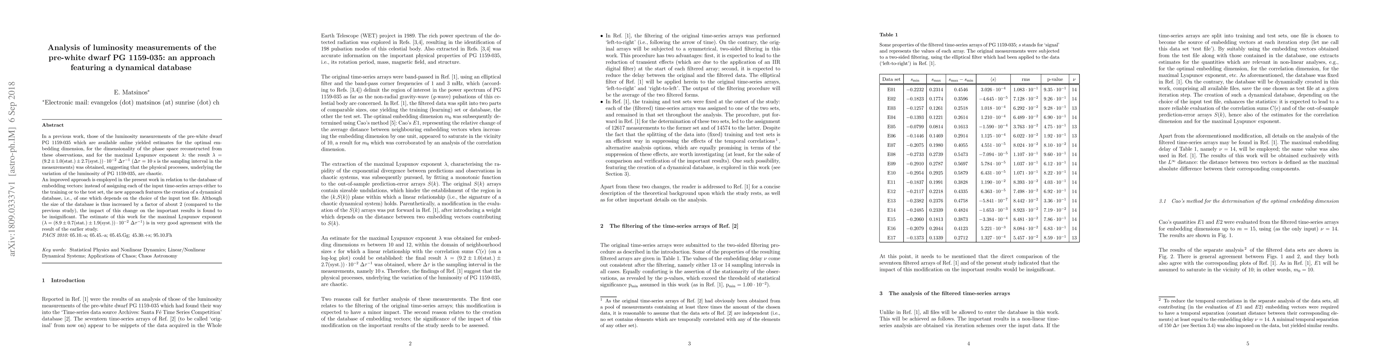 This paper analyzes luminosity measurements of the pre-white dwarf PG 1159-035 using a new dynamical database approach, finding that the maximal Lyapunov exponent remains consistent with previous results, suggesting chaotic physical processes underlying the luminosity variations. The new method increases database size but does not significantly alter the findings.