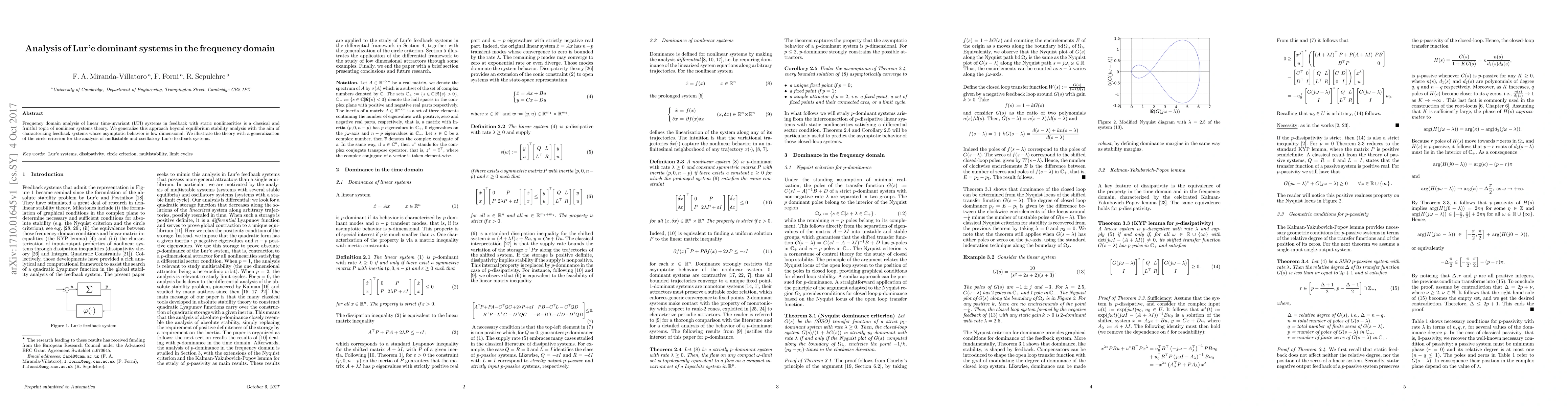 This paper generalizes frequency domain analysis for linear time-invariant systems with static nonlinearities, moving beyond equilibrium stability to characterize low-dimensional asymptotic behavior. It introduces a generalized circle criterion for analyzing multistable and oscillatory Lur'e feedback systems.