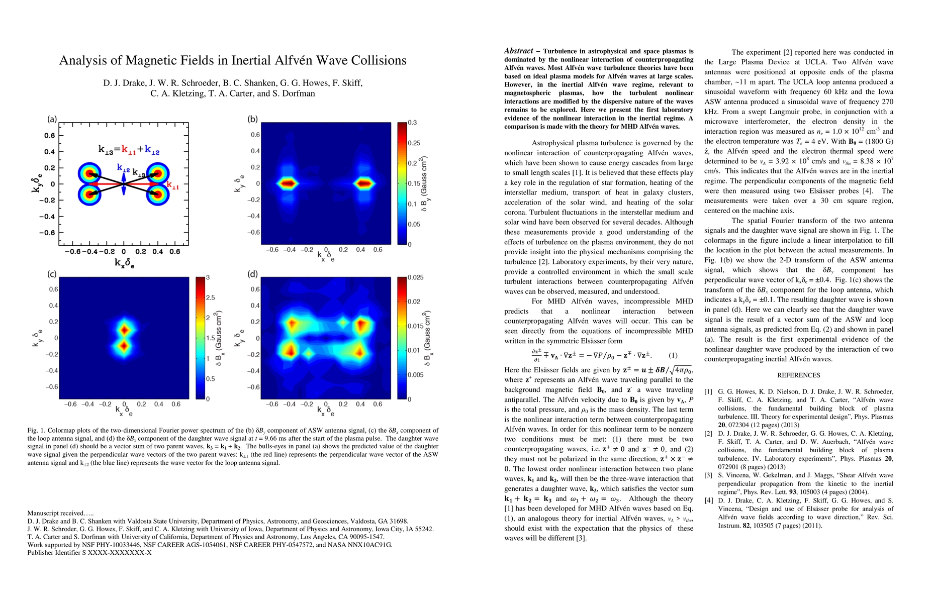 Turbulence in astrophysical and space plasmas is dominated by the nonlinear interaction of counterpropagating Alfven waves. Most Alfven wave turbulence theories have been based on ideal plasma models, such as incompressible MHD, for Alfven waves at large scales. However, in the inertial Alfven wave regime (vA > vthe), relevant to magnetospheric plasmas, how the turbulent nonlinear interactions are modified by the dispersive nature of the waves remains to be explored. Here we present the first laboratory evidence of the nonlinear interaction in the inertial regime. A comparison is made with the theory for MHD Alfven waves.