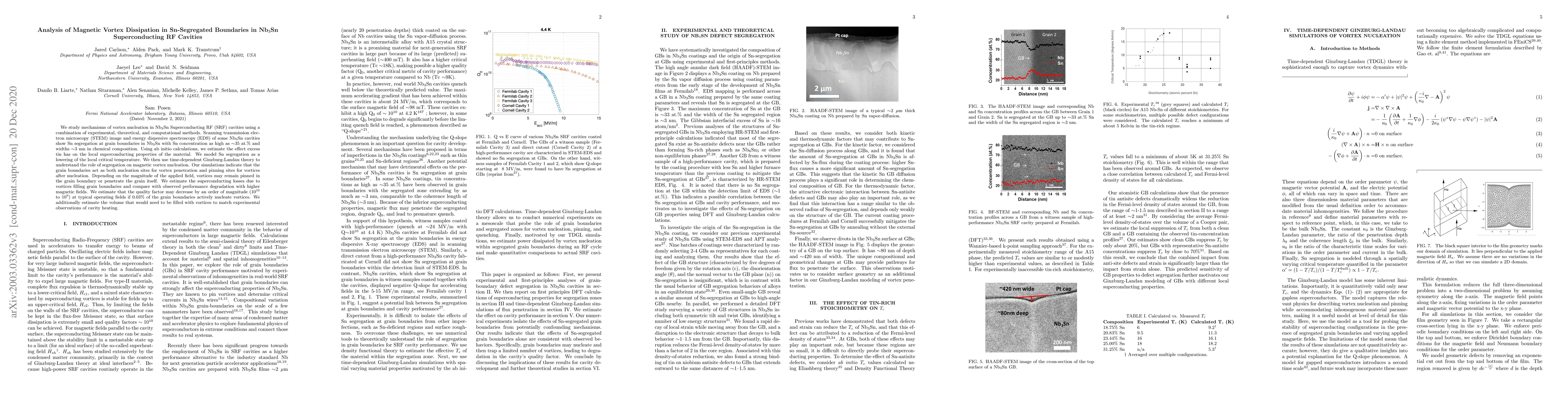 We study mechanisms of vortex nucleation in Nb$_3$Sn Superconducting RF (SRF) cavities using a combination of experimental, theoretical, and computational methods. Scanning transmission electron microscopy (STEM) image and energy dispersive spectroscopy (EDS) of some Nb$_3$Sn cavities show Sn segregation at grain boundaries in Nb$_3$Sn with Sn concentration as high as $\sim$35 at.\% and widths $\sim$3 nm in chemical composition. Using ab initio calculations, we estimate the effect excess tin has on the local superconducting properties of the material. We model Sn segregation as a lowering of the local critical temperature. We then use time-dependent Ginzburg-Landau theory to understand the role of segregation on magnetic vortex nucleation. Our simulations indicate that the grain boundaries act as both nucleation sites for vortex penetration and pinning sites for vortices after nucleation. Depending on the magnitude of the applied field, vortices may remain pinned in the grain boundary or penetrate the grain itself. We estimate the superconducting losses due to vortices filling grain boundaries and compare with observed performance degradation with higher magnetic fields. We estimate that the quality factor may decrease by an order of magnitude ($10^{10}$ to $10^9$) at typical operating fields if 0.03\% of the grain boundaries actively nucleate vortices. We additionally estimate the volume that would need to be filled with vortices to match experimental observations of cavity heating.