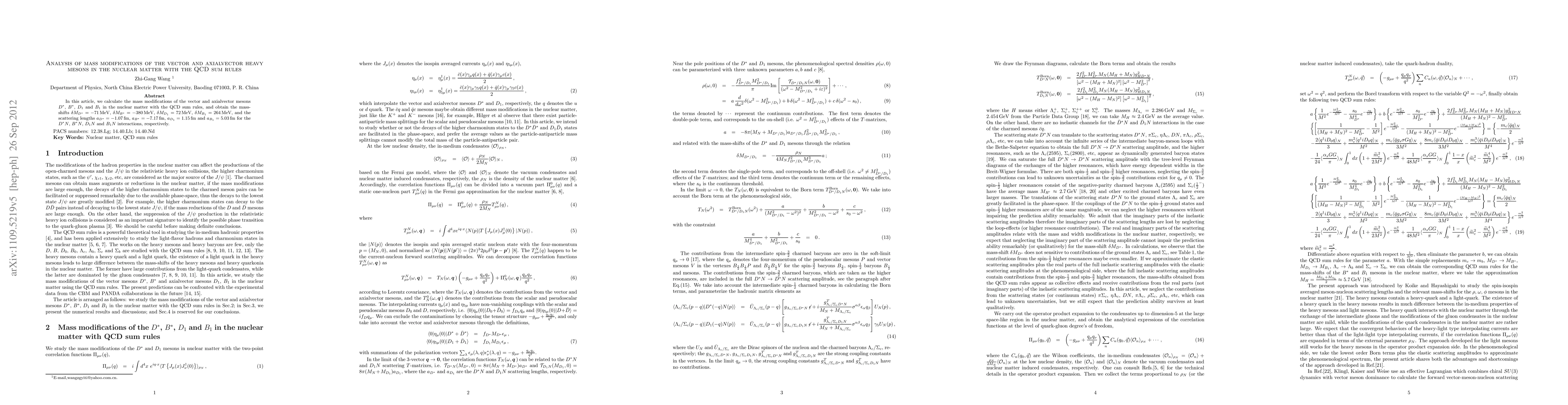 In this article, we calculate the mass modifications of the vector and axial-vector mesons $D^*$, $B^*$, $D_1$ and $B_1$ in the nuclear matter with the QCD sum rules, and obtain the mass-shifts $\delta M_{D^*}=-71 \rm{MeV}$, $\delta M_{B^*}=-380 \rm{MeV}$, $\delta M_{D_1}=72 \rm{MeV}$, $\delta M_{B_1}=264 \rm{MeV}$, and the scattering lengths $a_{D^*}=-1.07 \rm{fm}$, $a_{B^*}=-7.17 \rm{fm}$, $a_{D_1}=1.15 \rm{fm}$ and $a_{B_1}=5.03 \rm{fm}$ for the $D^*N$, $B^*N$, $D_1N$ and $B_1N$ interactions, respectively.