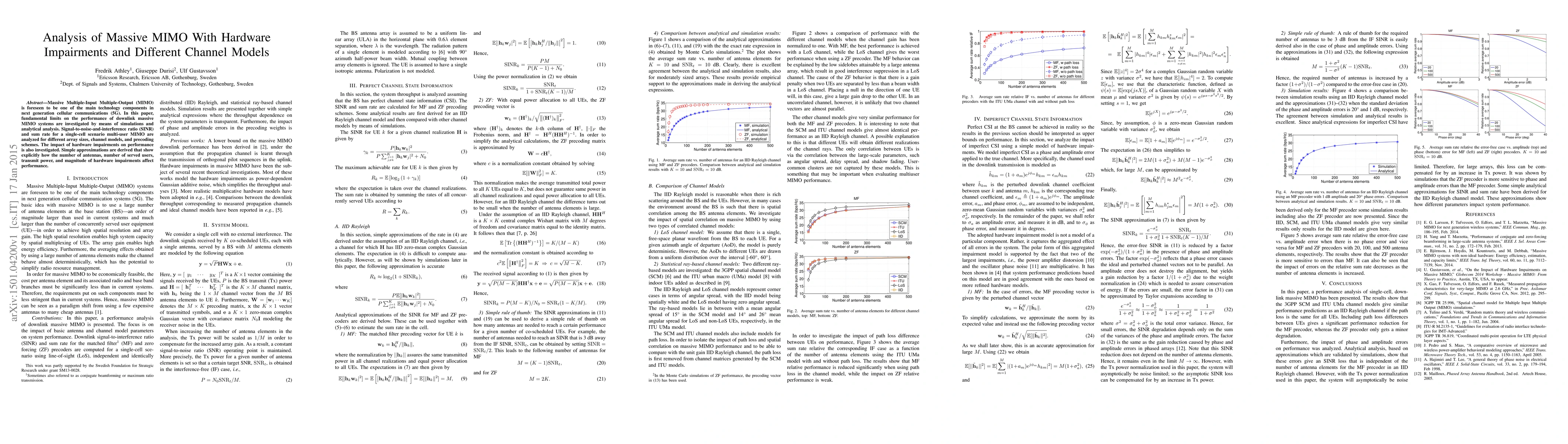 Massive Multiple-Input Multiple-Output (MIMO) is foreseen to be one of the main technology components in next generation cellular communications (5G). In this paper, fundamental limits on the performance of downlink massive MIMO systems are investigated by means of simulations and analytical analysis. Signal-to-noise-and-interference ratio (SINR) and sum rate for a single-cell scenario multi-user MIMO are analyzed for different array sizes, channel models, and precoding schemes. The impact of hardware impairments on performance is also investigated. Simple approximations are derived that show explicitly how the number of antennas, number of served users, transmit power, and magnitude of hardware impairments affect performance.