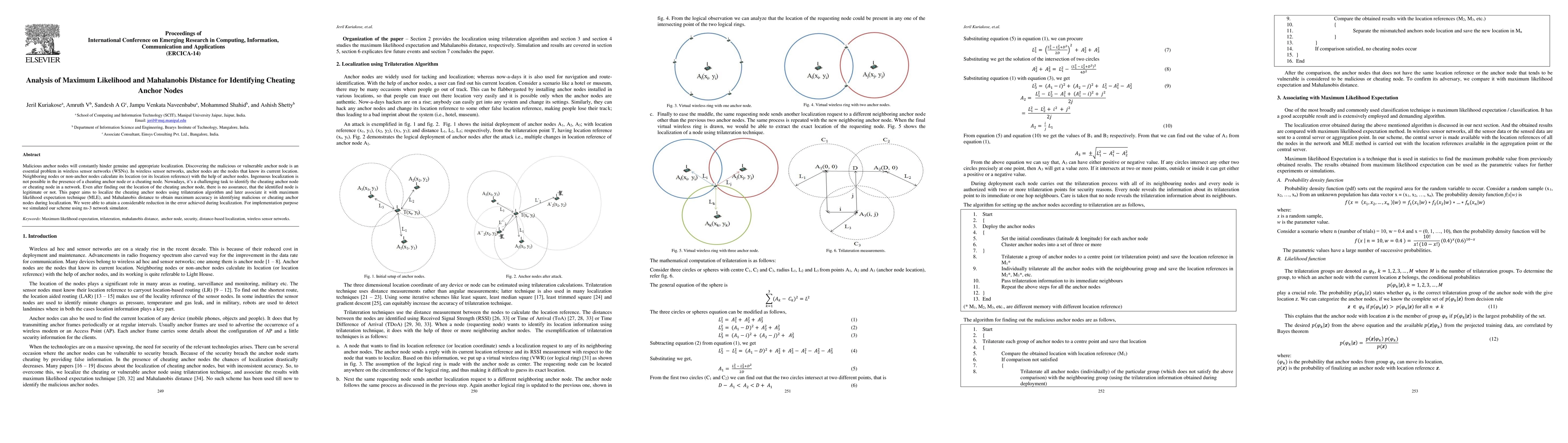Malicious anchor nodes will constantly hinder genuine and appropriate localization. Discovering the malicious or vulnerable anchor node is an essential problem in wireless sensor networks (WSNs). In wireless sensor networks, anchor nodes are the nodes that know its current location. Neighboring nodes or non-anchor nodes calculate its location (or its location reference) with the help of anchor nodes. Ingenuous localization is not possible in the presence of a cheating anchor node or a cheating node. Nowadays, its a challenging task to identify the cheating anchor node or cheating node in a network. Even after finding out the location of the cheating anchor node, there is no assurance, that the identified node is legitimate or not. This paper aims to localize the cheating anchor nodes using trilateration algorithm and later associate it with maximum likelihood expectation technique (MLE), and Mahalanobis distance to obtain maximum accuracy in identifying malicious or cheating anchor nodes during localization. We were able to attain a considerable reduction in the error achieved during localization. For implementation purpose we simulated our scheme using ns-3 network simulator.