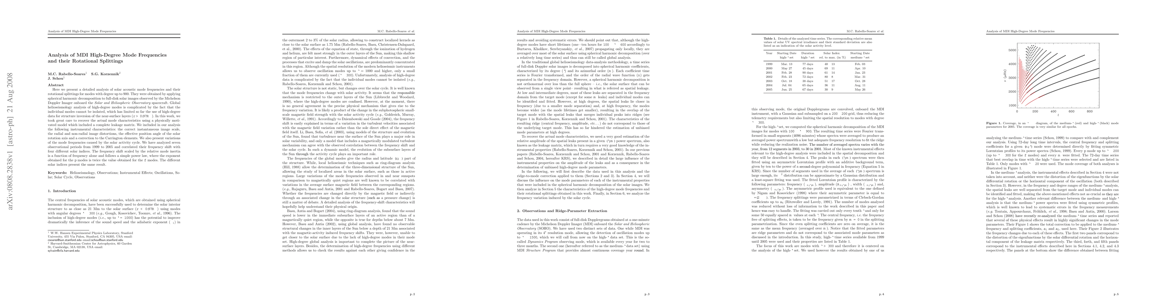 This paper analyzes solar acoustic mode frequencies and their rotational splittings for high-degree modes up to 900, using data from the Michelson Doppler Imager. It employs a physically motivated model to recover mode characteristics and correlates frequency shifts with solar activity cycles, finding a power law relationship between frequency shift and mode inertia.