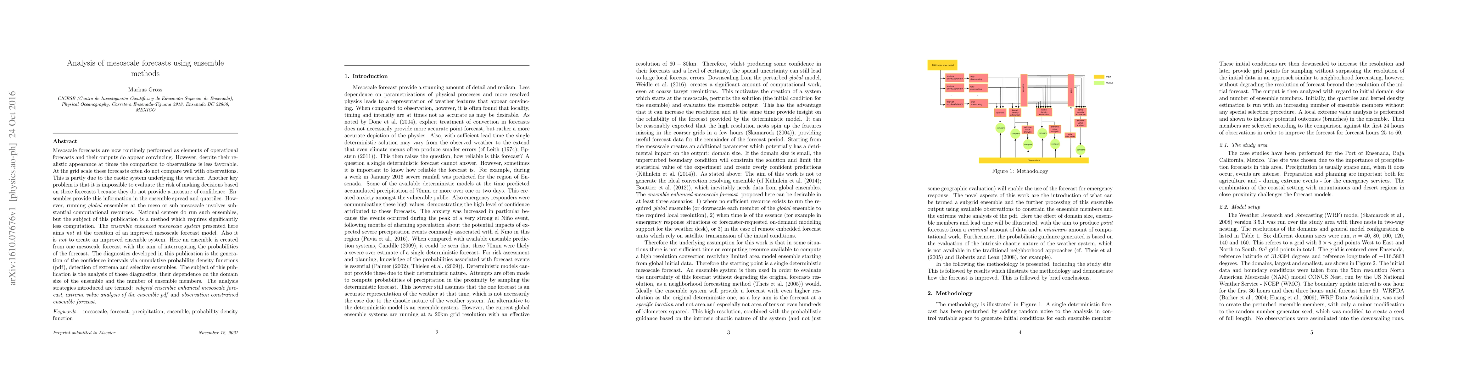 This paper analyzes mesoscale forecasts using ensemble methods to improve the confidence intervals and probabilistic interpretation of forecasts, focusing on diagnostics like cumulative probability density functions and extreme value analysis. The study aims to reduce computational costs while enhancing forecast reliability through ensemble-based diagnostics.