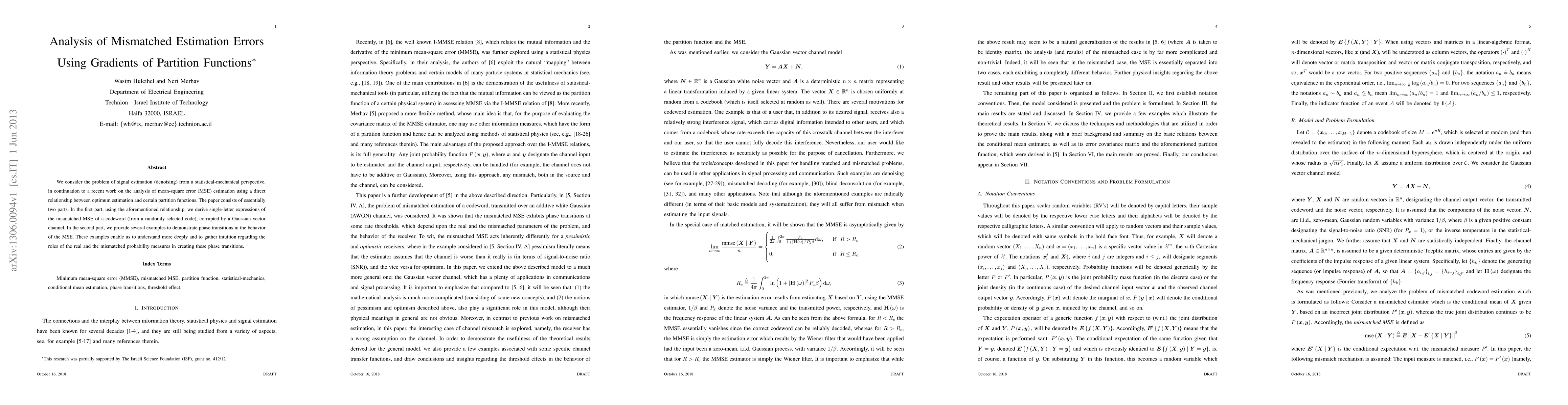 This paper analyzes mismatched estimation errors in signal denoising from a statistical-mechanical viewpoint, deriving expressions for the mismatched mean-square error (MSE) of a codeword in a Gaussian channel. It also explores phase transitions in MSE behavior, providing insights into the roles of real and mismatched probability measures in these transitions.