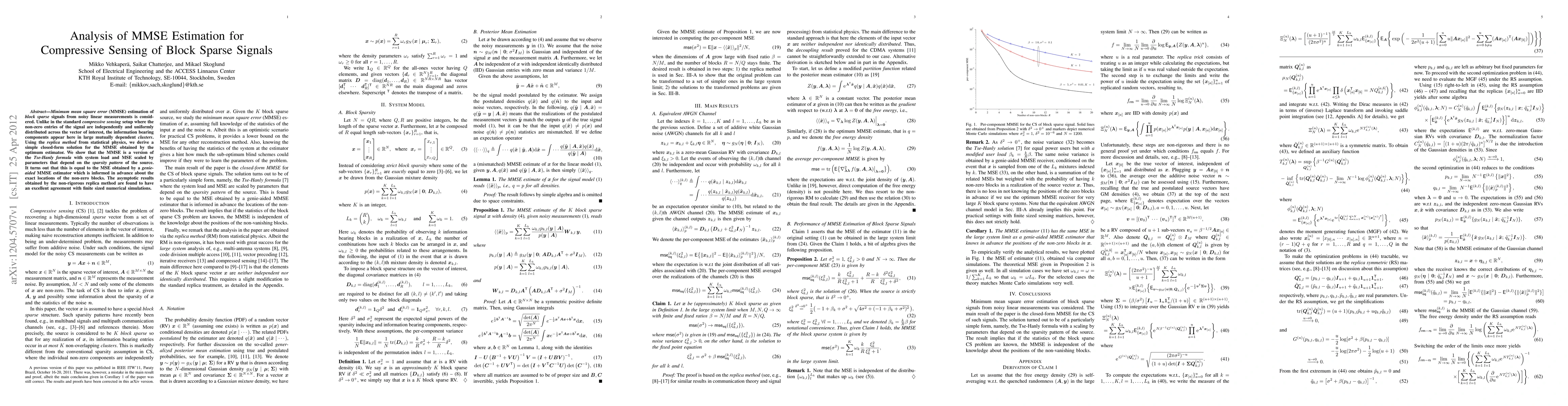Researchers developed a method to estimate block sparse signals from noisy measurements using the MMSE (Minimum Mean Square Error) estimation, achieving results comparable to a genie-aided estimator that knows the exact locations of non-zero blocks.