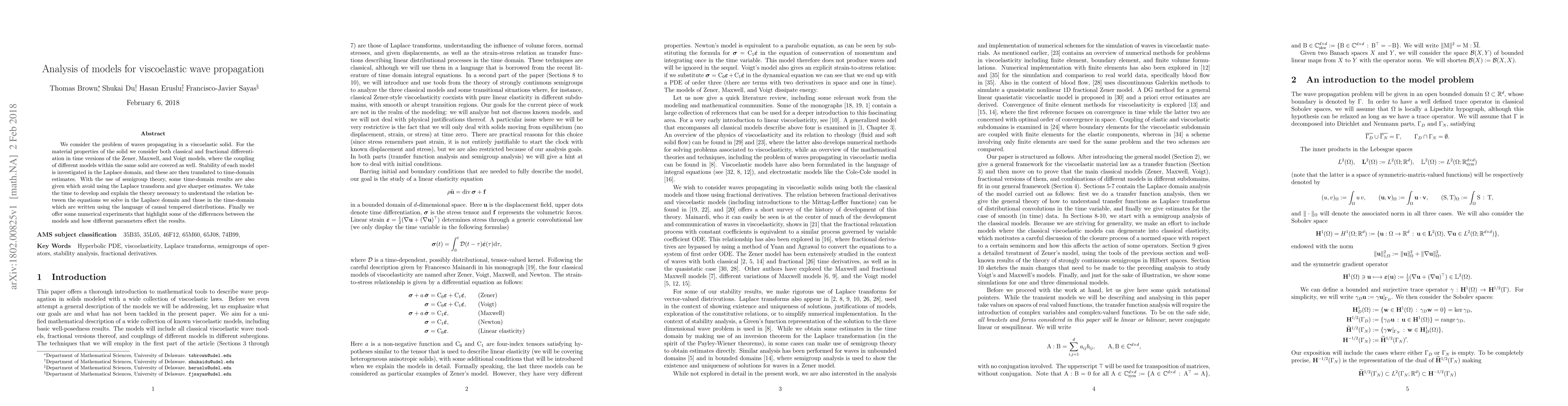 This paper analyzes stability of viscoelastic wave propagation models in the Laplace and time domains, highlighting differences between Zener, Maxwell, and Voigt models and their parameter effects.