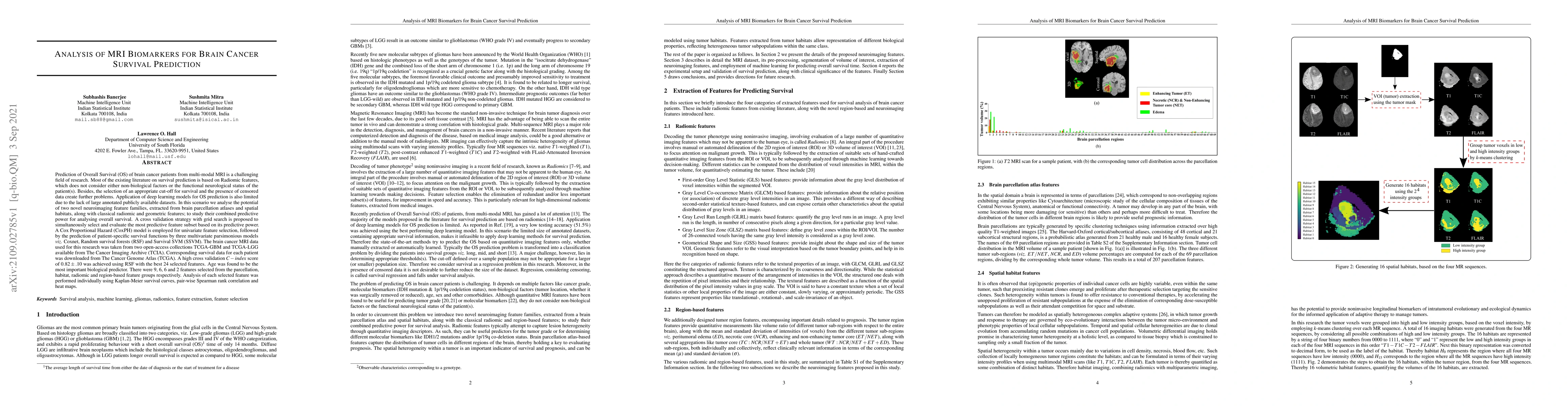 This study explores the predictive power of novel neuroimaging features, including parcellation atlases, spatial habitats, radiomic, and geometric features, for brain cancer survival prediction. A cross-validation strategy with grid search and Cox Proportional Hazard model identified a subset of 24 features, achieving a high $C-index$ score of $0.82\pm.10$ using Random Survival Forests, with age being the most significant biological predictor.