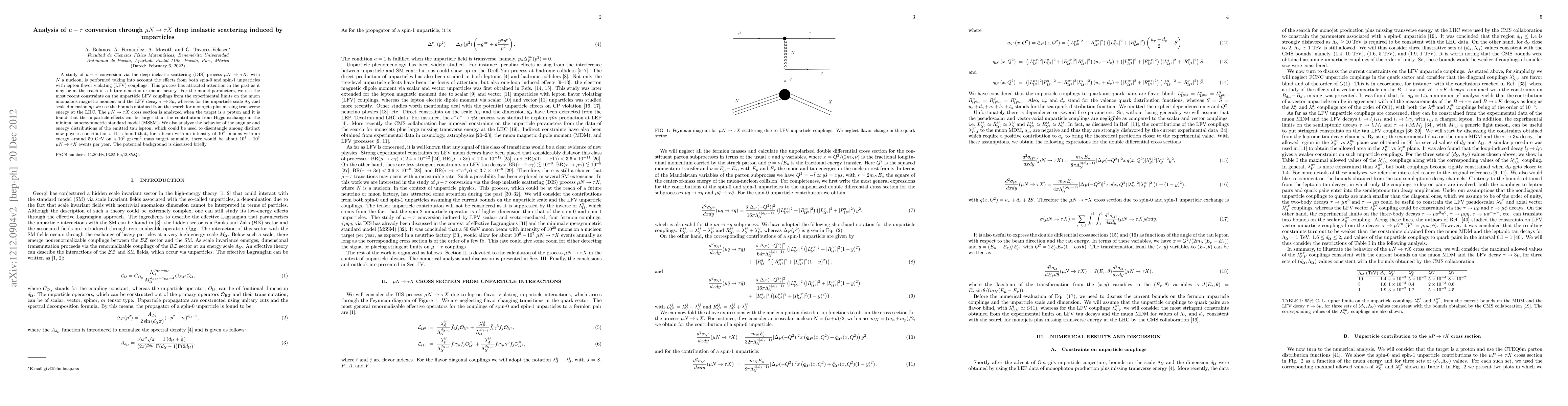 This research analyzes mu-tau conversion in deep inelastic scattering (mu N ightarrow au X) involving unparticles with LFV couplings. It finds that unparticle effects in the cross section can surpass Higgs exchange contributions in the minimal supersymmetric standard model. The study estimates around 10^2-10^3 (mu N ightarrow au X) events per year with a 10^20 muon beam, discussing potential backgrounds.