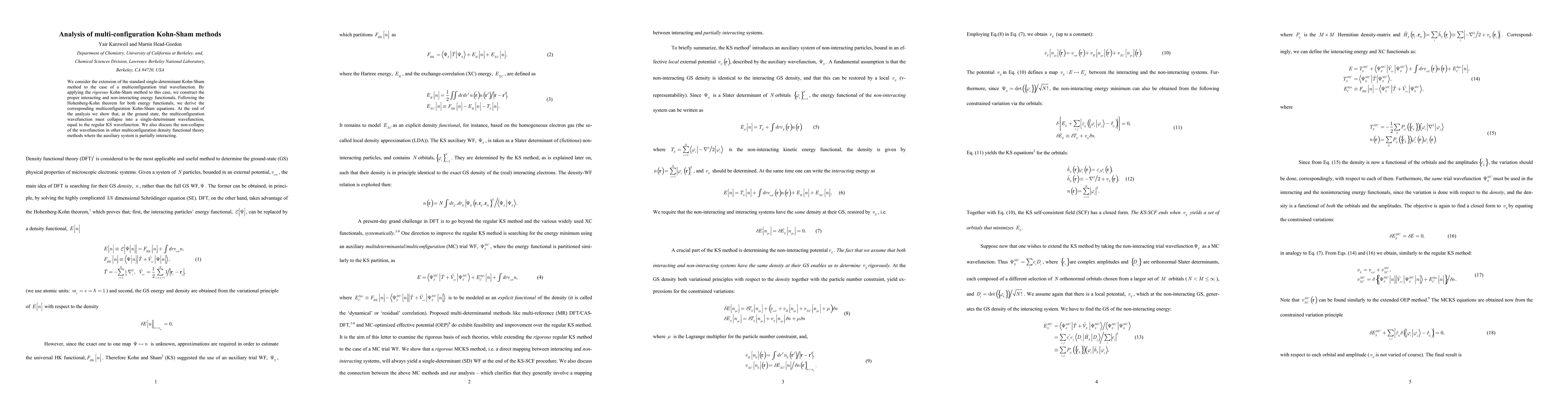 This paper extends the Kohn-Sham method to multiconfiguration trial wavefunctions, deriving appropriate interacting and non-interacting energy functionals and corresponding multiconfiguration Kohn-Sham equations. It concludes that, at the ground state, the multiconfiguration wavefunction reverts to a single-determinant form.