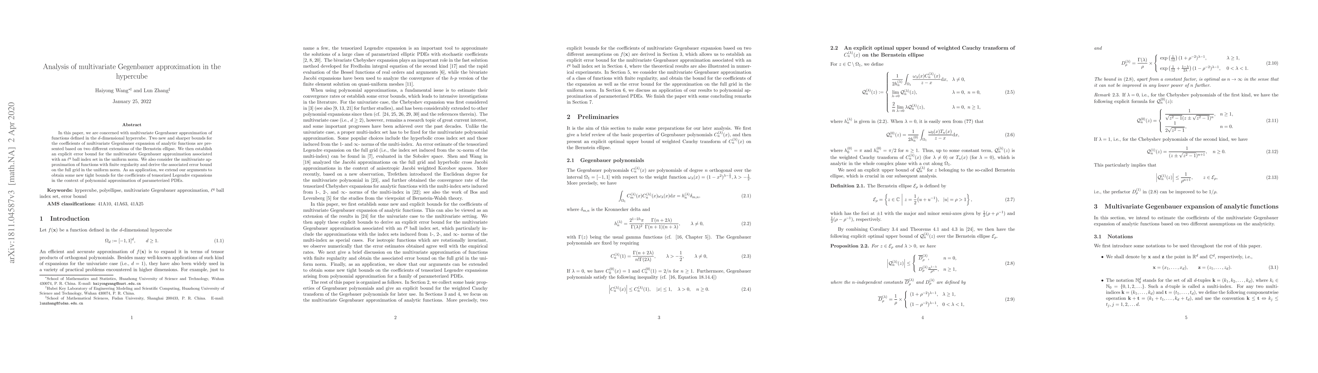 A new analysis provides sharper bounds for multivariate Gegenbauer expansions of functions in the $d$-dimensional hypercube, leading to improved error estimates for approximating analytic functions.