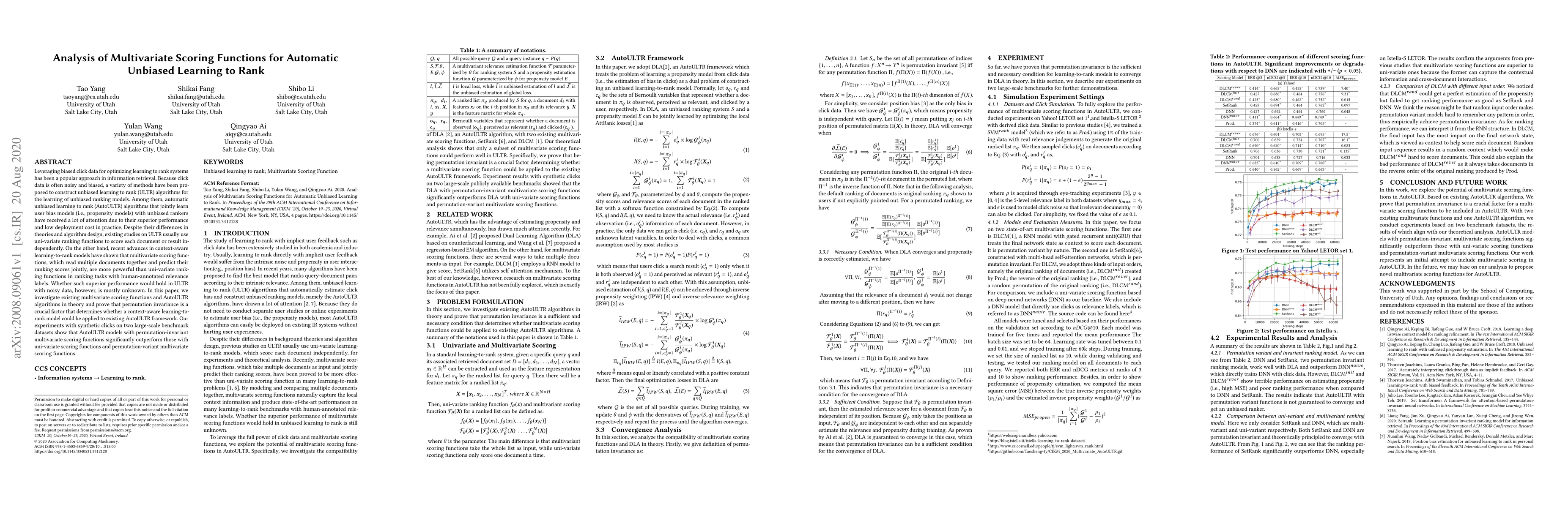 This paper investigates the effectiveness of multivariate scoring functions in automatic unbiased learning to rank (AutoULTR) systems, demonstrating that permutation-invariant multivariate functions outperform both univariate and permutation-variant multivariate functions, especially in the presence of noisy click data. Experiments on large-scale datasets confirm the theoretical findings.