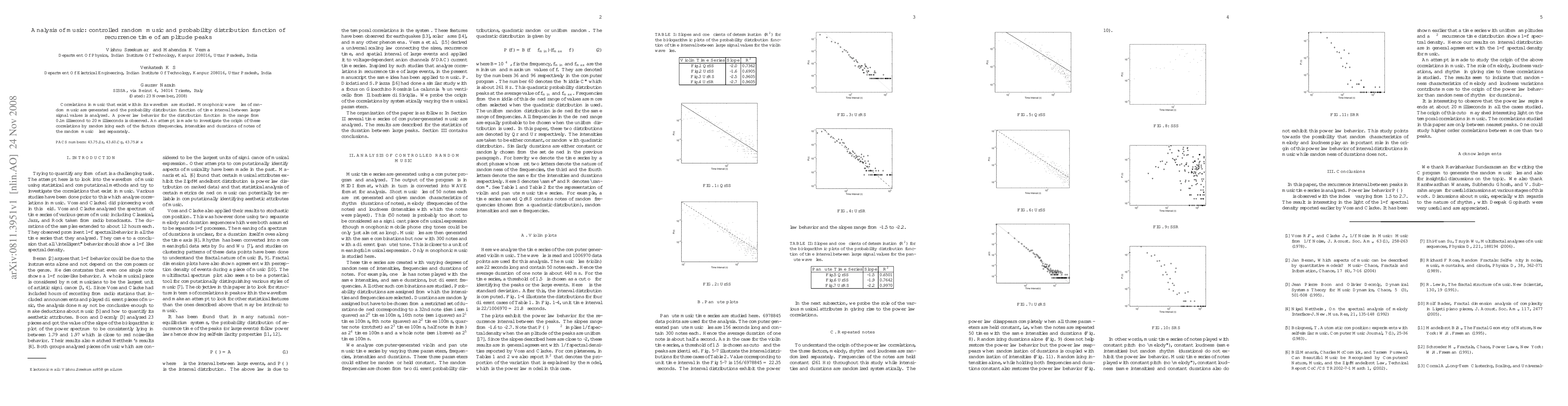 Correlations in music that exist within its waveform are studied. Monophonic wave files of random music are generated and the probability distribution function of time interval between large signal values is analyzed. A power law behavior for the distribution function in the range from 0.1 millisecond to 20 milliseconds is observed. An attempt is made to investigate the origin of these correlations by randomizing each of the factors (frequencies, intensities and durations of notes of the random music files) separately.