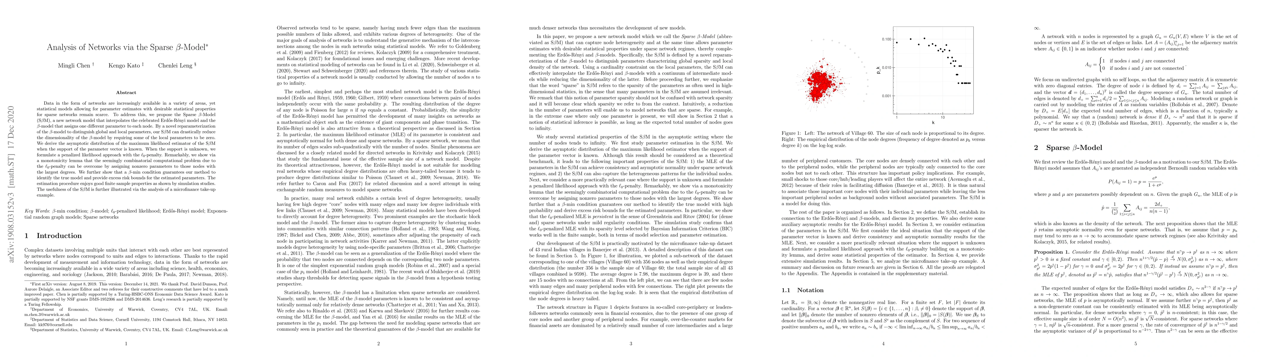 Data in the form of networks are increasingly available in a variety of areas, yet statistical models allowing for parameter estimates with desirable statistical properties for sparse networks remain scarce. To address this, we propose the Sparse $\beta$-Model (S$\beta$M), a new network model that interpolates the celebrated Erd\H{o}s-R\'enyi model and the $\beta$-model that assigns one different parameter to each node. By a novel reparameterization of the $\beta$-model to distinguish global and local parameters, our S$\beta$M can drastically reduce the dimensionality of the $\beta$-model by requiring some of the local parameters to be zero. We derive the asymptotic distribution of the maximum likelihood estimator of the S$\beta$M when the support of the parameter vector is known. When the support is unknown, we formulate a penalized likelihood approach with the $\ell_0$-penalty. Remarkably, we show via a monotonicity lemma that the seemingly combinatorial computational problem due to the $\ell_0$-penalty can be overcome by assigning nonzero parameters to those nodes with the largest degrees. We further show that a $\beta$-min condition guarantees our method to identify the true model and provide excess risk bounds for the estimated parameters. The estimation procedure enjoys good finite sample properties as shown by simulation studies. The usefulness of the S$\beta$M is further illustrated via the analysis of a microfinance take-up example.